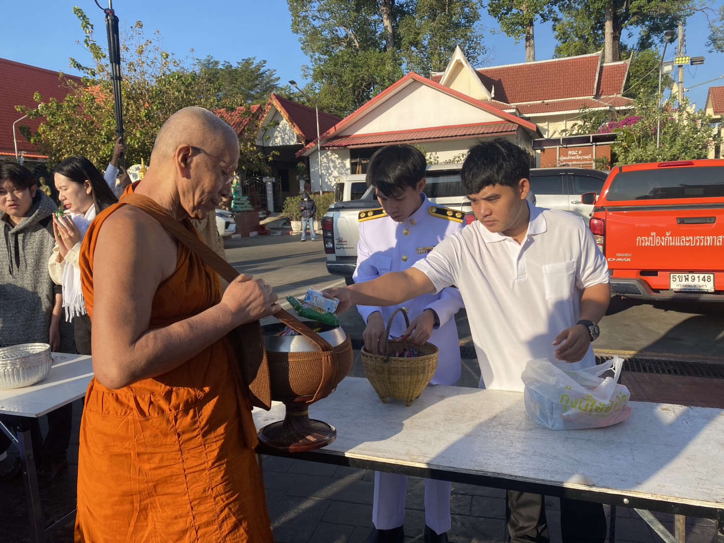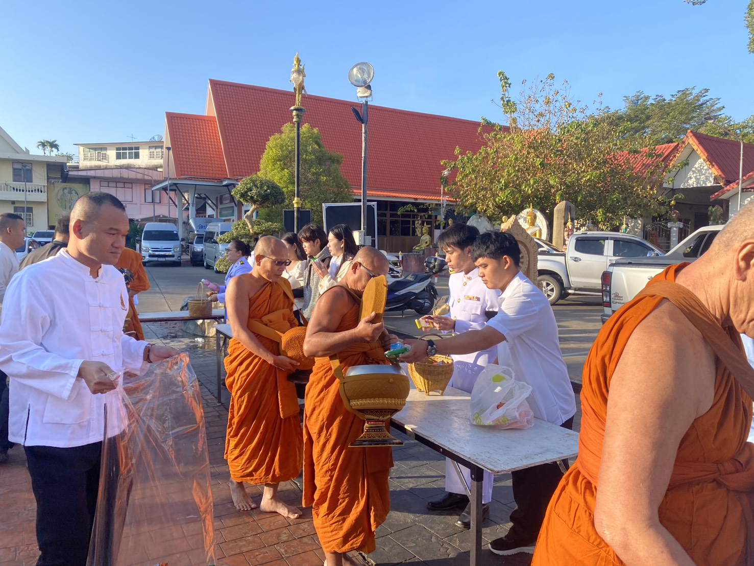 - ผู้ว่าราชการจังหวัด นำผู้เข้าร่วมพิธีร่วมทำบุญตักบาตรพระสงฆ์และสามเณร