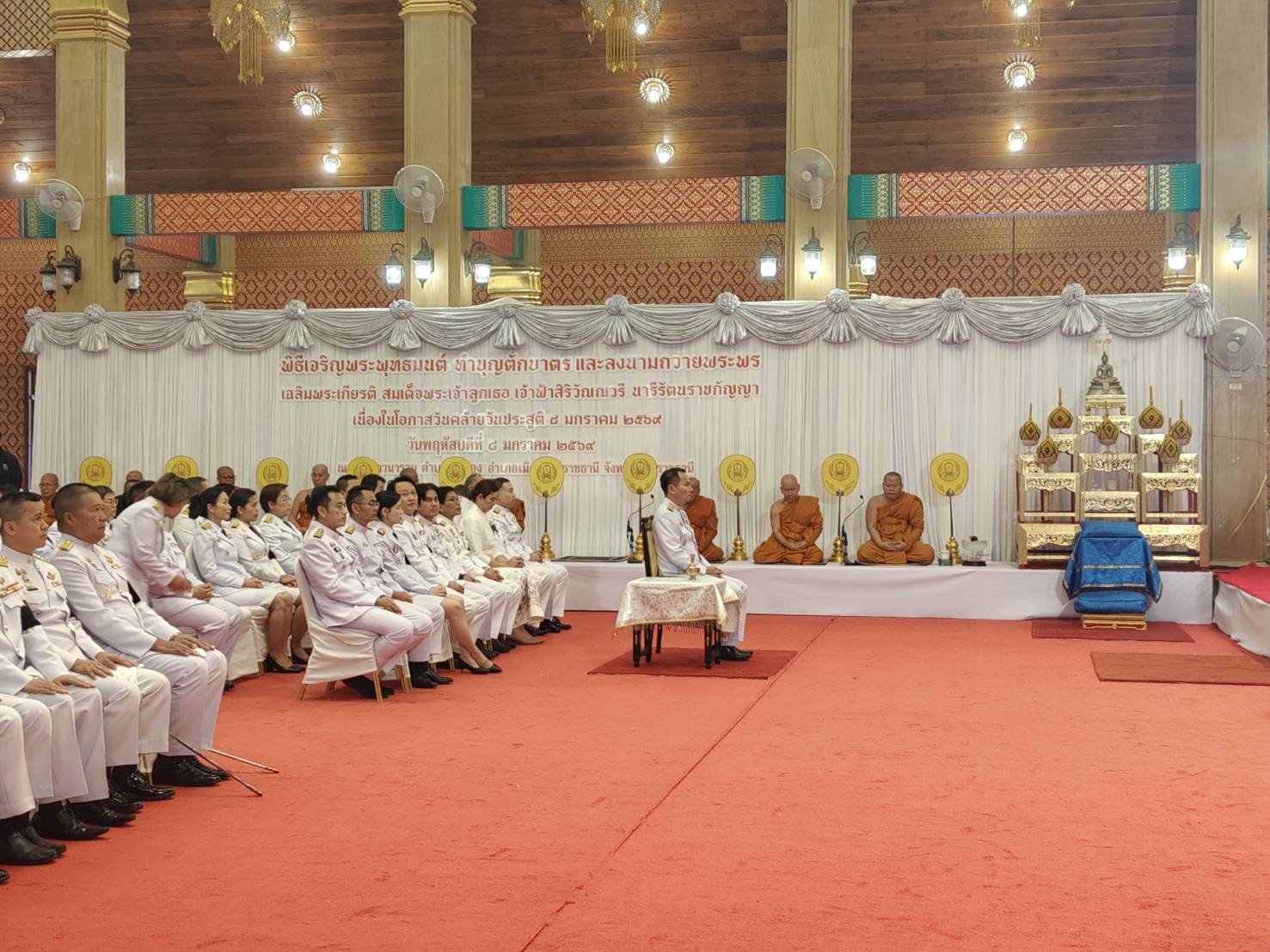 นายสุริยันต์ วรรณวงษ์ ประมงจังหวัดอุบลราชธานี มอบหมายให้ นายกนกพล ดุมแก้ว นักวิชาการประมง พร้อมด้วย นายศุภาการ สว่างวงศ์ เจ้าพนักงานประมง ร่วมพิธีเจริญพระพุทธมนต์ และทำบุญตักบาตร เพื่อเฉลิมพระเกียรติสมเด็จพระเจ้าลูกเธอ เจ้าฟ้าสิริวัณณวรี นารีรัตนราชกัญญา เนื่องในโอกาสวันคล้ายวันประสูติ 8 มกราคม 2569 เพื่อแสดงความจงรักภักดีและสำนึกในพระกรุณาธิคุณ โดยมีนายณรงค์ เทพเสนา ผู้ว่าราชการจังหวัดอุบลราชธานี เป็นประธาน
