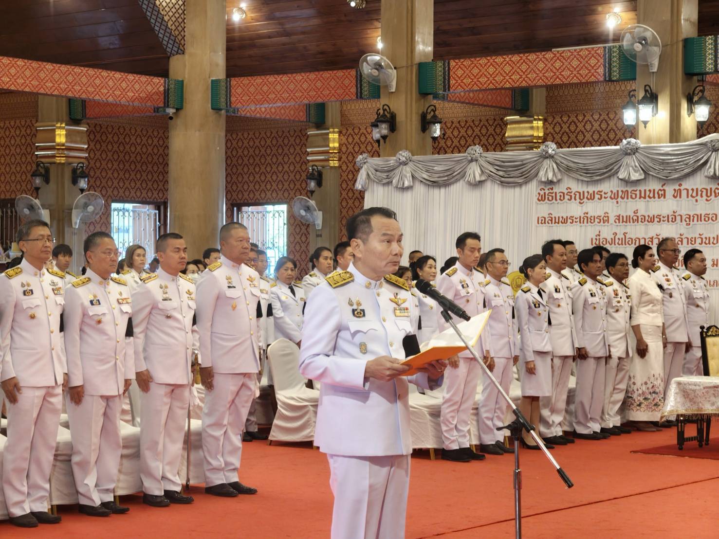 - ผู้ว่าราชการจังหวัดอุบลราชธานี เป็นประธานถวายดอกไม้ธูปเทียนแพหน้าพระรูป และกล่าวถวายพระพรชัยมงคล