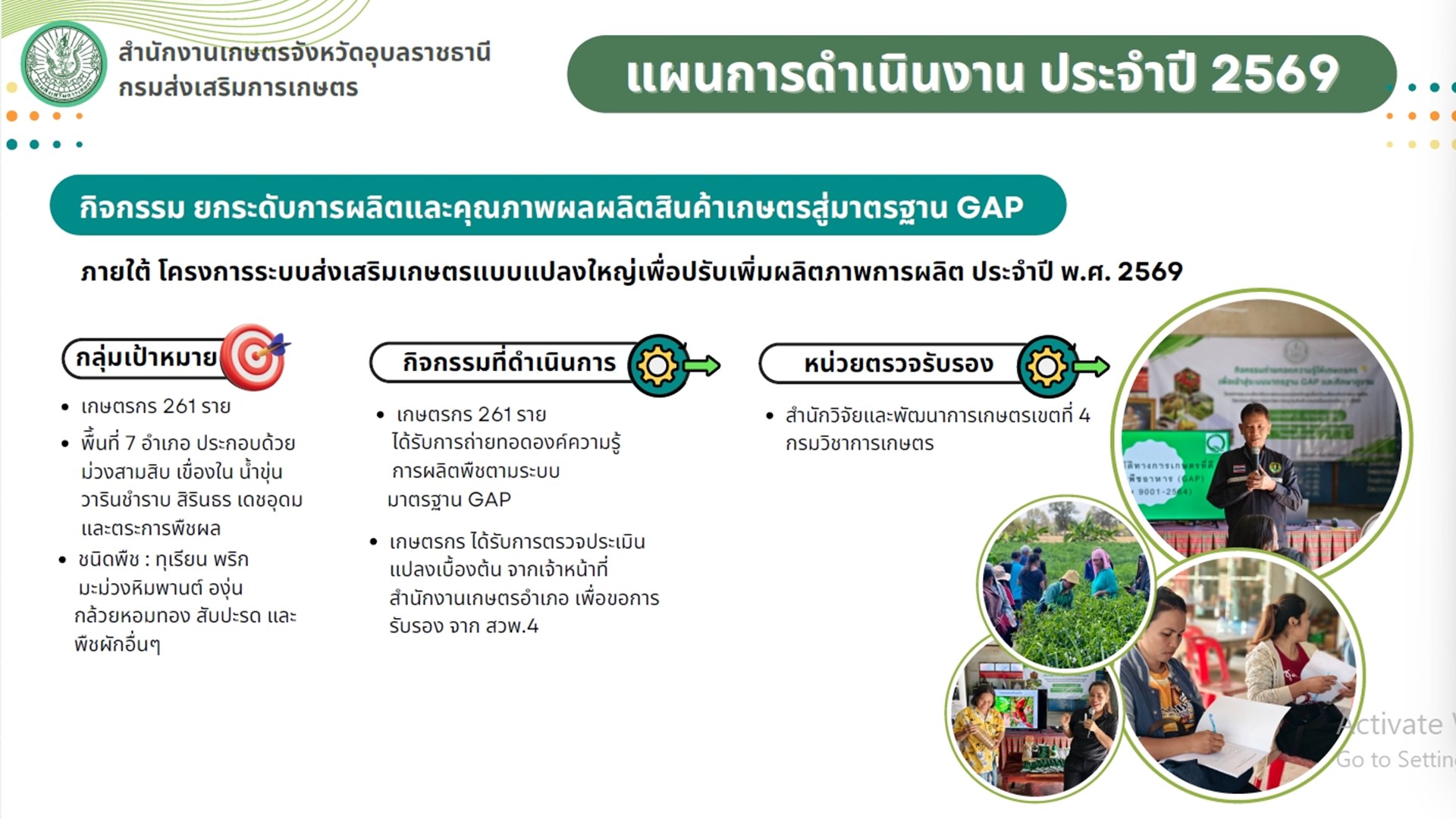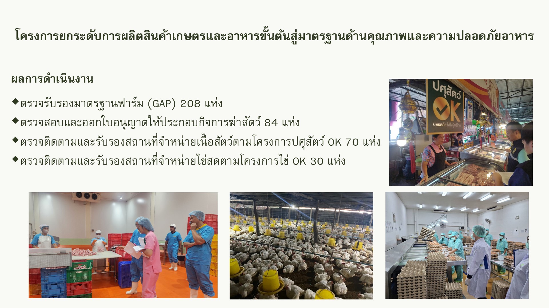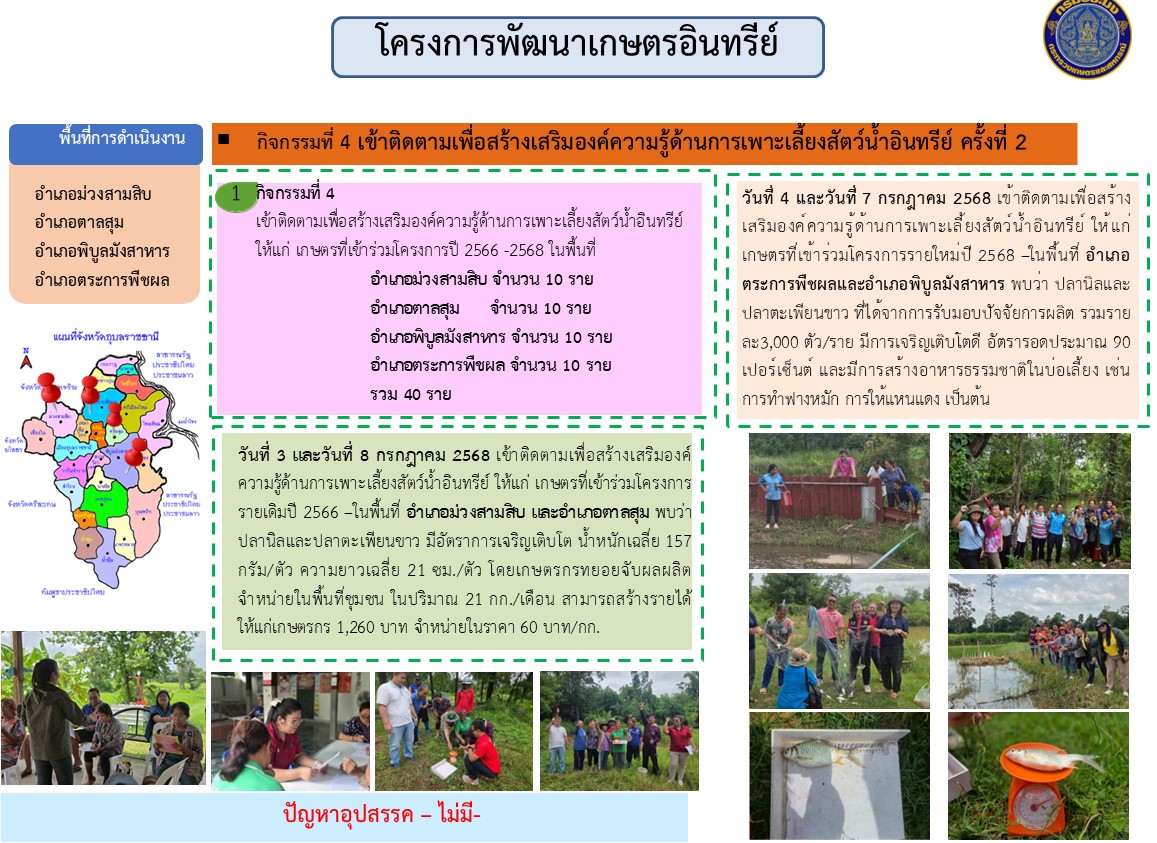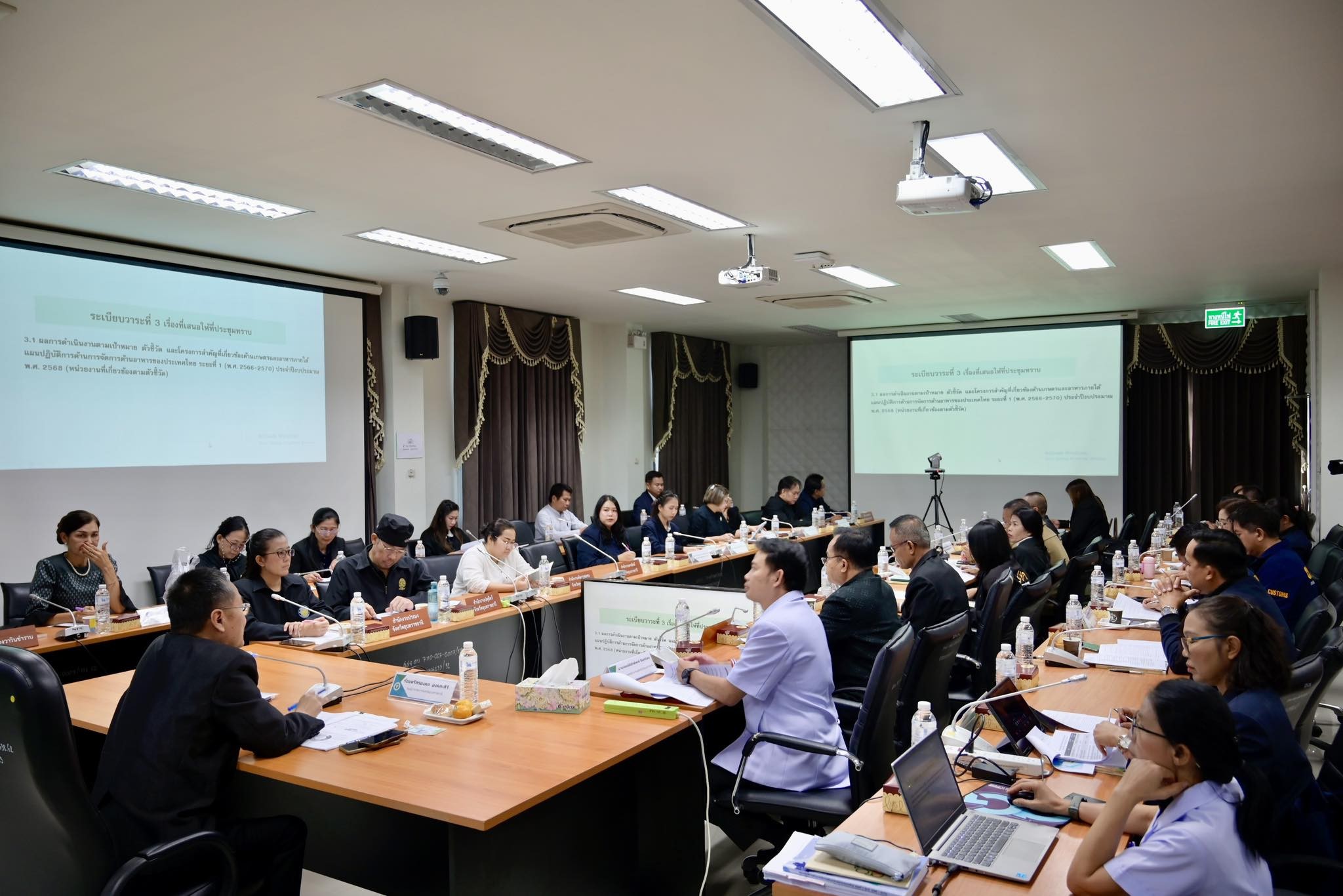 การประชุมครั้งนี้นางสาวศิริรัตน์ อุทัยวัฒน์ ได้รายงานผลการดำเนินงาน โครงการสำคัญ ภายใต้แผนปฏิบัติการด้านการจัดการด้านอาหารของประเทศไทย ปี 2568 จำนวน 3 โครงการ ได้แก่ โครงการยกระดับคุณภาพมาตรฐานสินค้าเกษตร ปีงบประมาณ ๒๕๖8 โครงการพัฒนาอาชีพการเพาะเลี้ยงปลาตะเพียนขาวในบ่อดิน และกิจกรรมพัฒนาเกษตรกรอินทรีย์ปี 2568