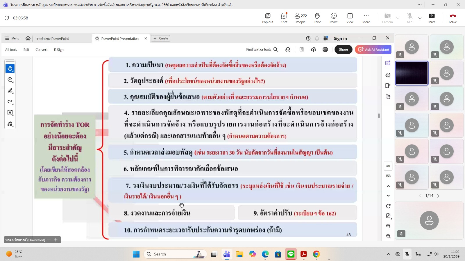 นายสุริยันต์ วรรณวงษ์ ประมงจังหวัดอุบลราชธานี มอบหมายให้ นางสาวนิภาพร ทองแปลง เจ้าพนักงานธุรการชำนาญงาน ร่วมอบรมหลักสูตร ระเรียบกระทรวงการคลังว่าด้วยการจัดซื้อจัดจ้างและการบริหารพัสดุภาครัฐ พ.ศ. 2560 ผ่านระบบ Microsoft Teams เพื่อสร้างความรู้ความเข้าใจในเนื้อหาและสาระสำคัญของระเบียบกระทรวงการคลังฯ ในส่วนภูมิภาค ให้สามารถดำเนินกระบวนการจัดซื้อจัดจ้างได้อย่างถูกต้องตามกฎหมาย และลดข้อผิดพลาดในการปฏิบัติงานและเพิ่มประสิทธิภาพการใช้จ่ายงบประมาณภาครัฐ