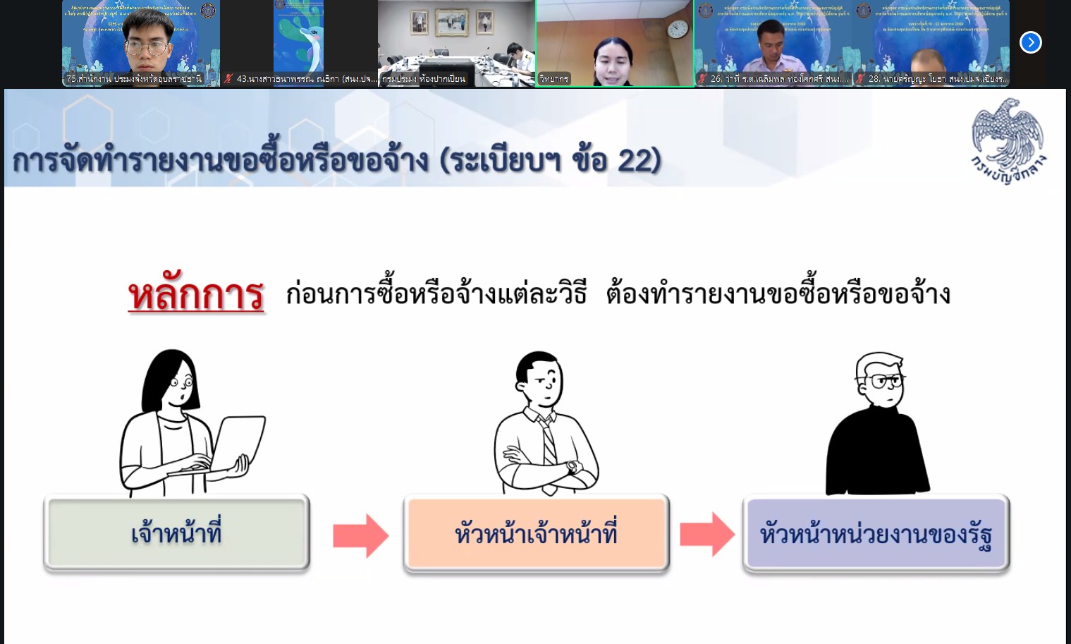 ระหว่างวันที่ 19 - 22 มกราคม 2569 นายสุริยันต์ วรรณวงษ์ ประมงจังหวัดอุบลราชธานี มอบหมายให้ นายกนกพล ดุมแก้ว ร่วมอบรม หลักสูตร การเพิ่มประสิทธิภาพการจัดซื้อจัดจ้างภาครัฐ ตามพระราชบัญญัติการจัดซื้อจัดจ้าง และการบริหารพัสดุภาครัฐ พ.ศ. 2560 สำหรับผู้ปฏิบัติงาน รุ่นที่ 4 ณ สำนักงานประมงจังหวัดอุบลราชธานี ผ่านระบบสื่อสารออนไลน์ Zoom meeting เพื่อสร้างมาตรฐานใหม่ในการบริหารจัดการพัสดุตามพระราชบัญญัติการจัดซื้อจัดจ้างและการบริหารพัสดุภาครัฐ พ.ศ. 2560 และระเบียบกระทรวงการคลังที่เกี่ยวข้อง