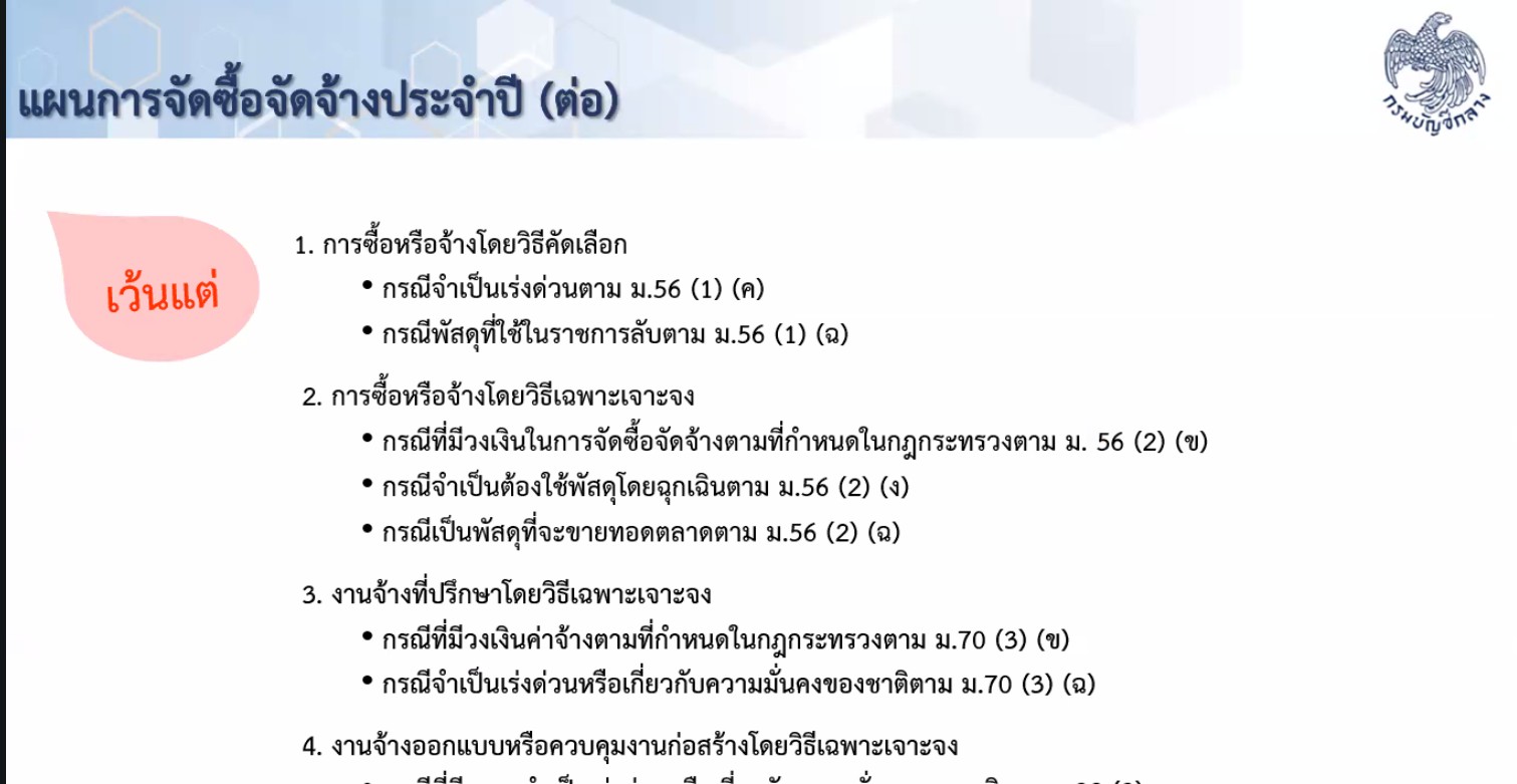 ปัจจุบันหน่วยงานรัฐได้นำ พระราชบัญญัติการจัดซื้อจัดจ้างและการบริหารพัสดุภาครัฐ พ.ศ. 2560 มาใช้เป็นกลไกหลักในการดำเนินงาน เพื่อให้การใช้จ่ายงบประมาณเป็นไปอย่างมีประสิทธิภาพสูงสุด โดยยึดหลักสำคัญ 4 ประการ ได้แก่ ความคุ้มค่า, ความโปร่งใส, มีประสิทธิภาพและประสิทธิผล และตรวจสอบได้ เพื่อป้องกันการทุจริตและยกระดับมาตรฐานการบริหารพัสดุภาครัฐให้มีความเป็นสากลและเกิดประโยชน์สูงสุดต่อประชาชน