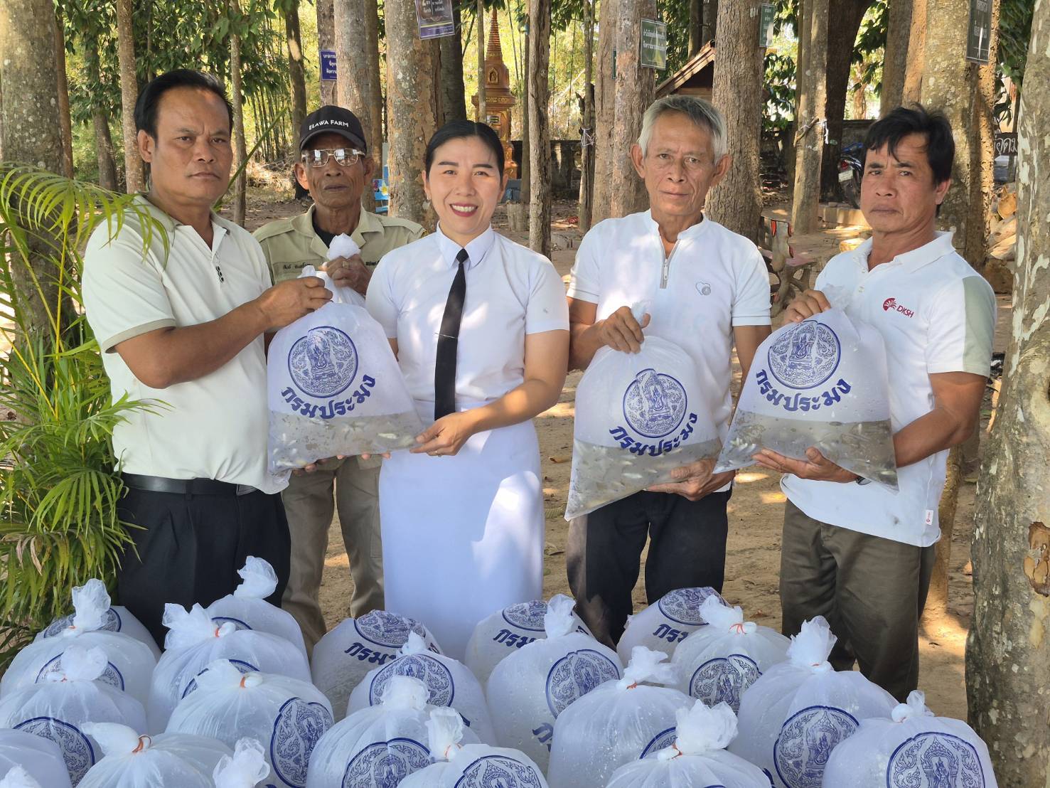 สมเด็จพระนางเจ้าสิริกิติ์ พระบรมราชินีนาถ พระบรมราชชนนีพันปีหลวง จำนวน 70 ถุง รวมพันธุ์ปลา 8,500 ตัว ซึ่งได้รับความอนุเคราะห์จากศูนย์วิจัยและพัฒนาประมงน้ำจืดอุบลราชธานี และฟาร์มดอนชีพันธุ์ปลา ตำบลกุดชมภู อำเภอพิบูลมังสาหาร จังหวัดอุบลราชธานี