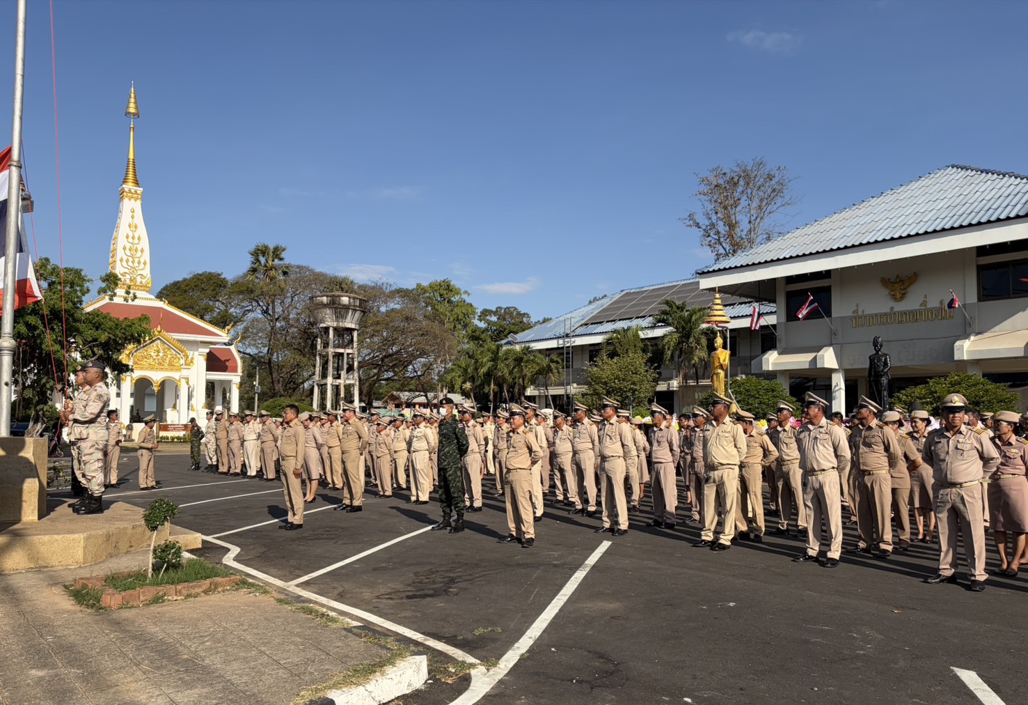 - เวลา 08.30 น. ร่วมพิธีเคารพธงชาติ บริเวณหน้าที่ว่าการอำเภอเขื่องใน