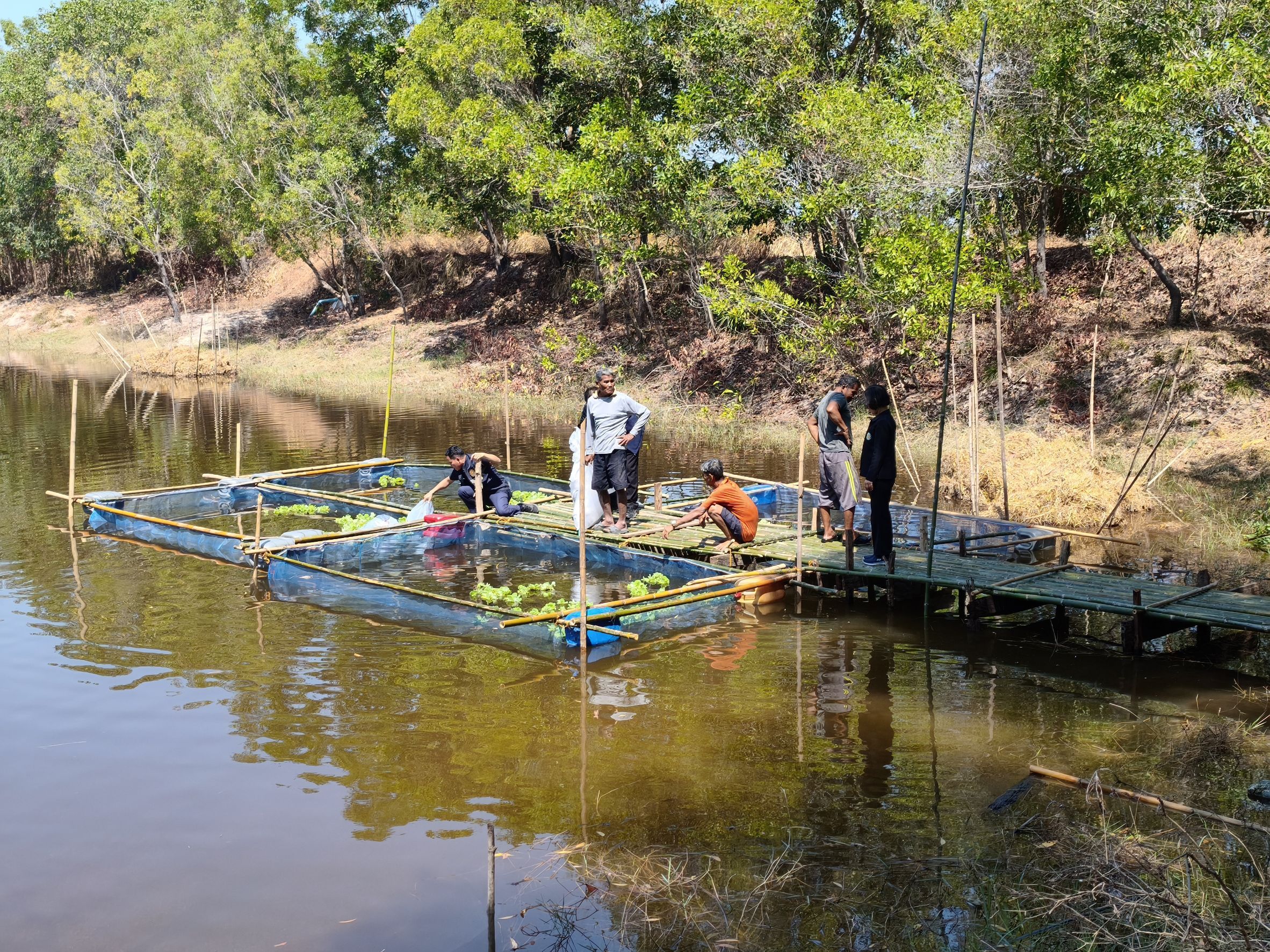 2. ดำเนินสร้างกระชังสำหรับกิจกรรมการอนุบาลลูกพันธุ์ปลานิลแปลงเพศในกระชังเพื่อจำหน่าย จำนวน ครั้งที่ 1 จำนวน 4,800 ตัว