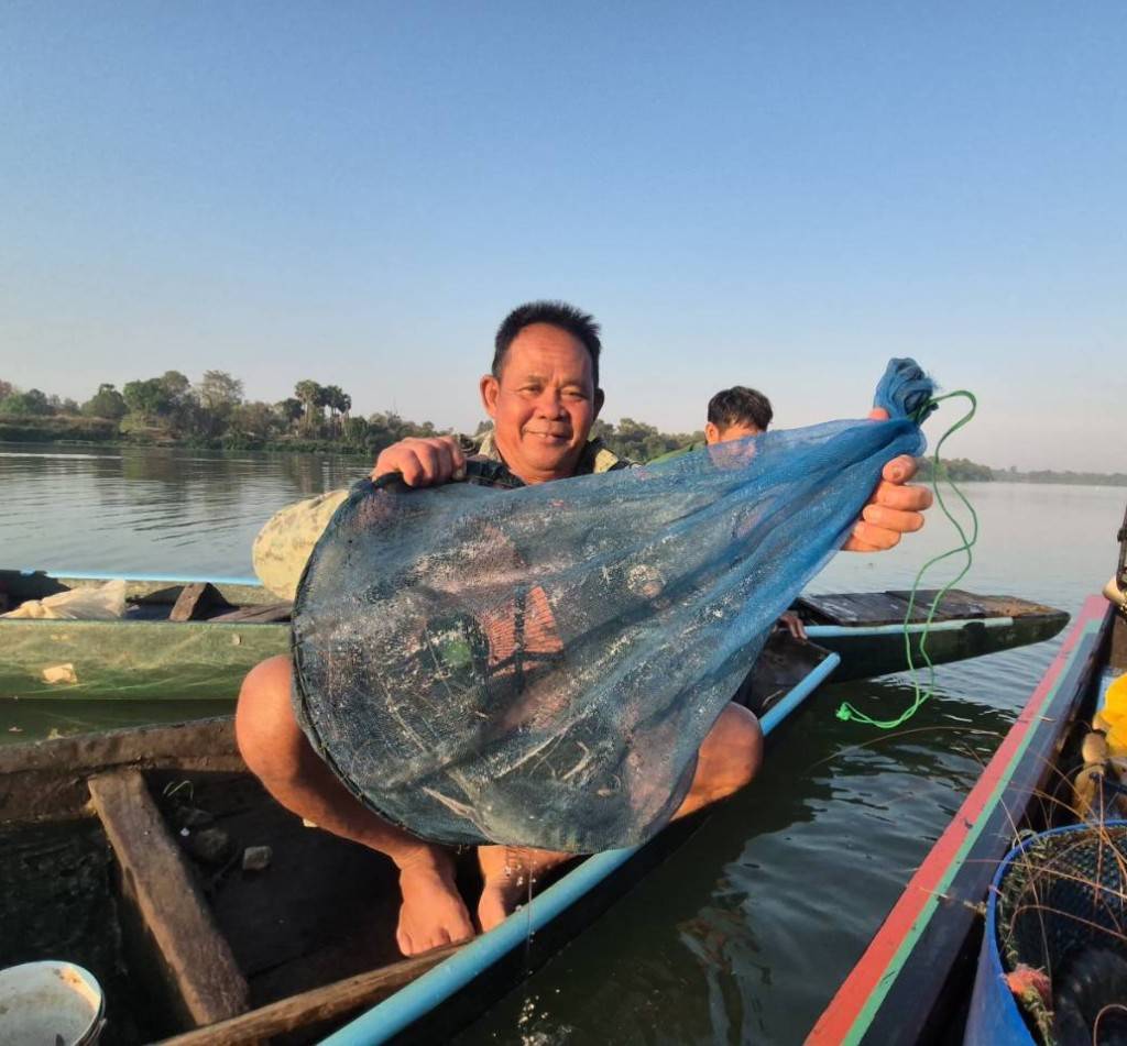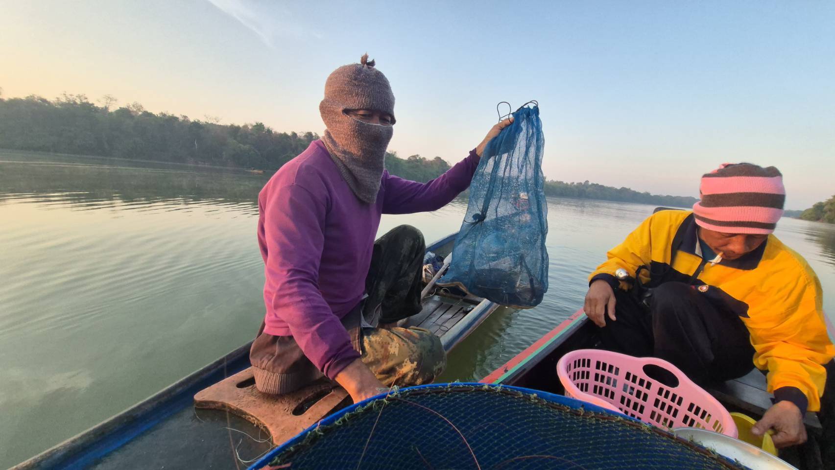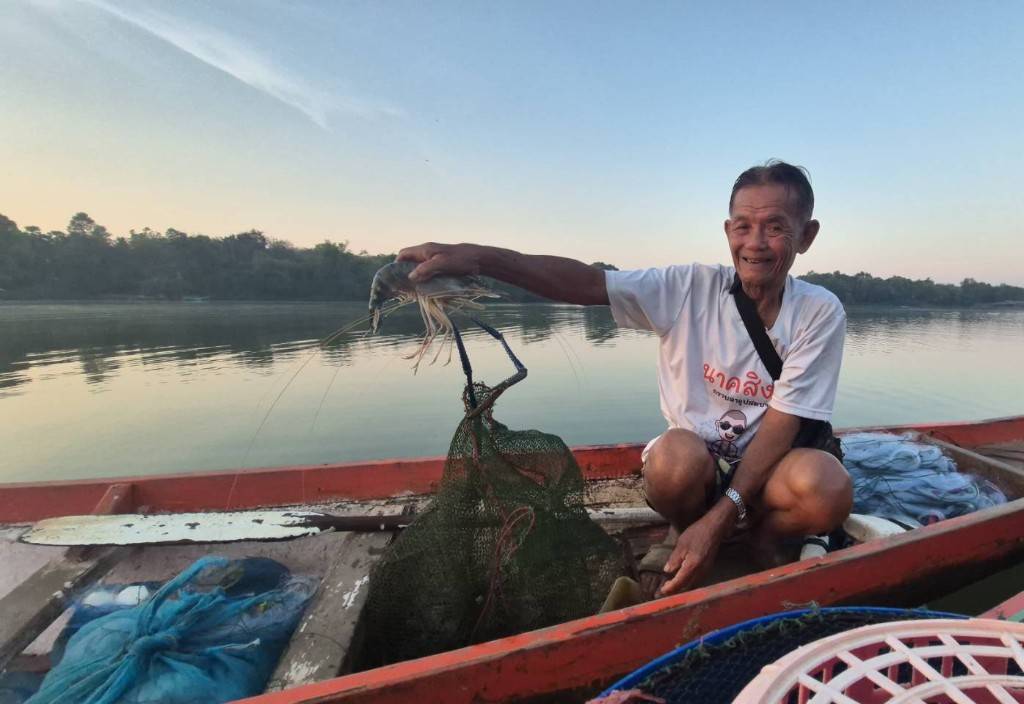 ประมงอำเภอพิบูลมังสาหาร ติดตามข้อมูลการจับกุ้งก้ามกรามในแม่น้ำมูล ของชาวประมงในพื้นที่จังหวัดอุบลราชธานี