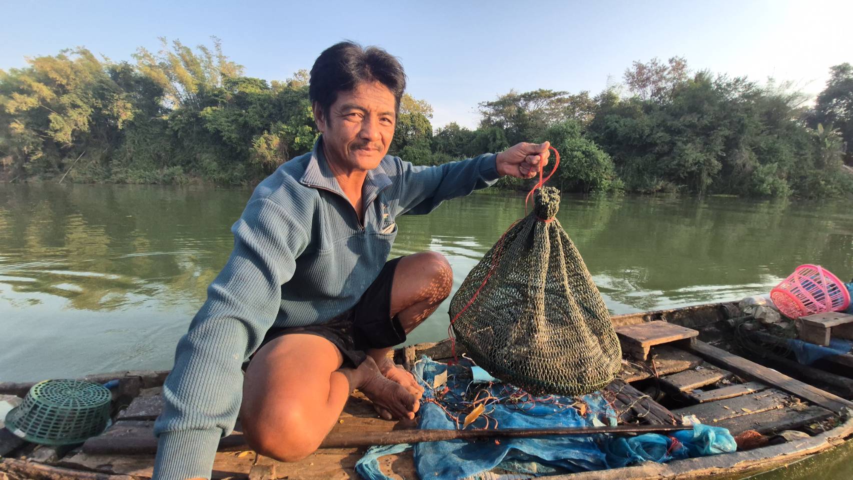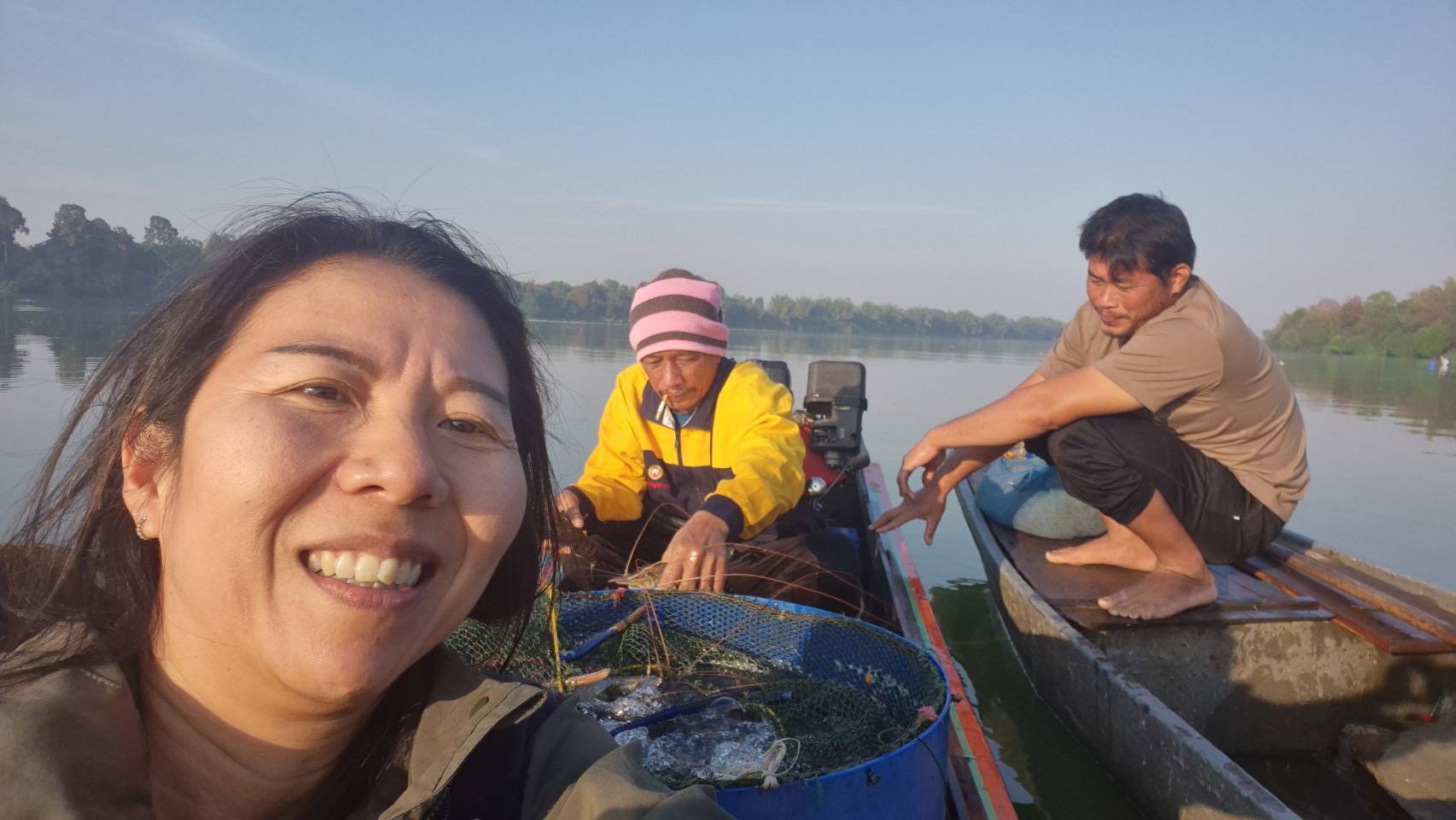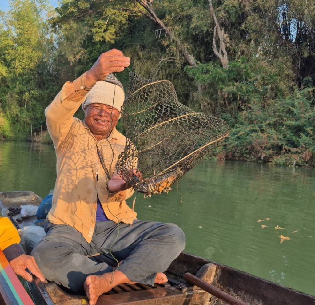 ประมงอำเภอพิบูลมังสาหาร ติดตามข้อมูลการจับกุ้งก้ามกรามในแม่น้ำมูล ของชาวประมงในพื้นที่จังหวัดอุบลราชธานี