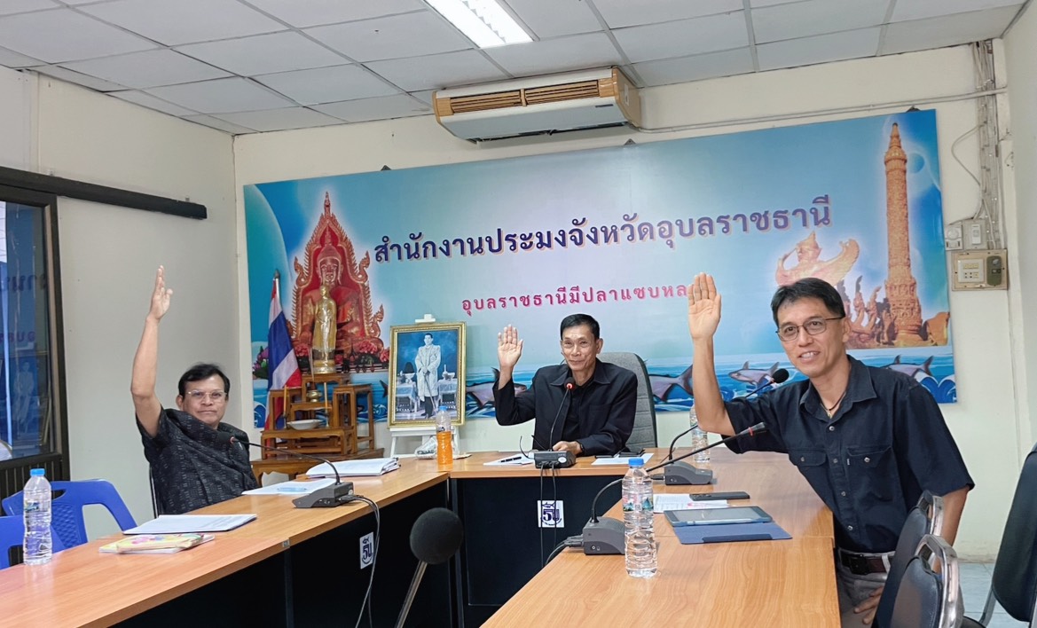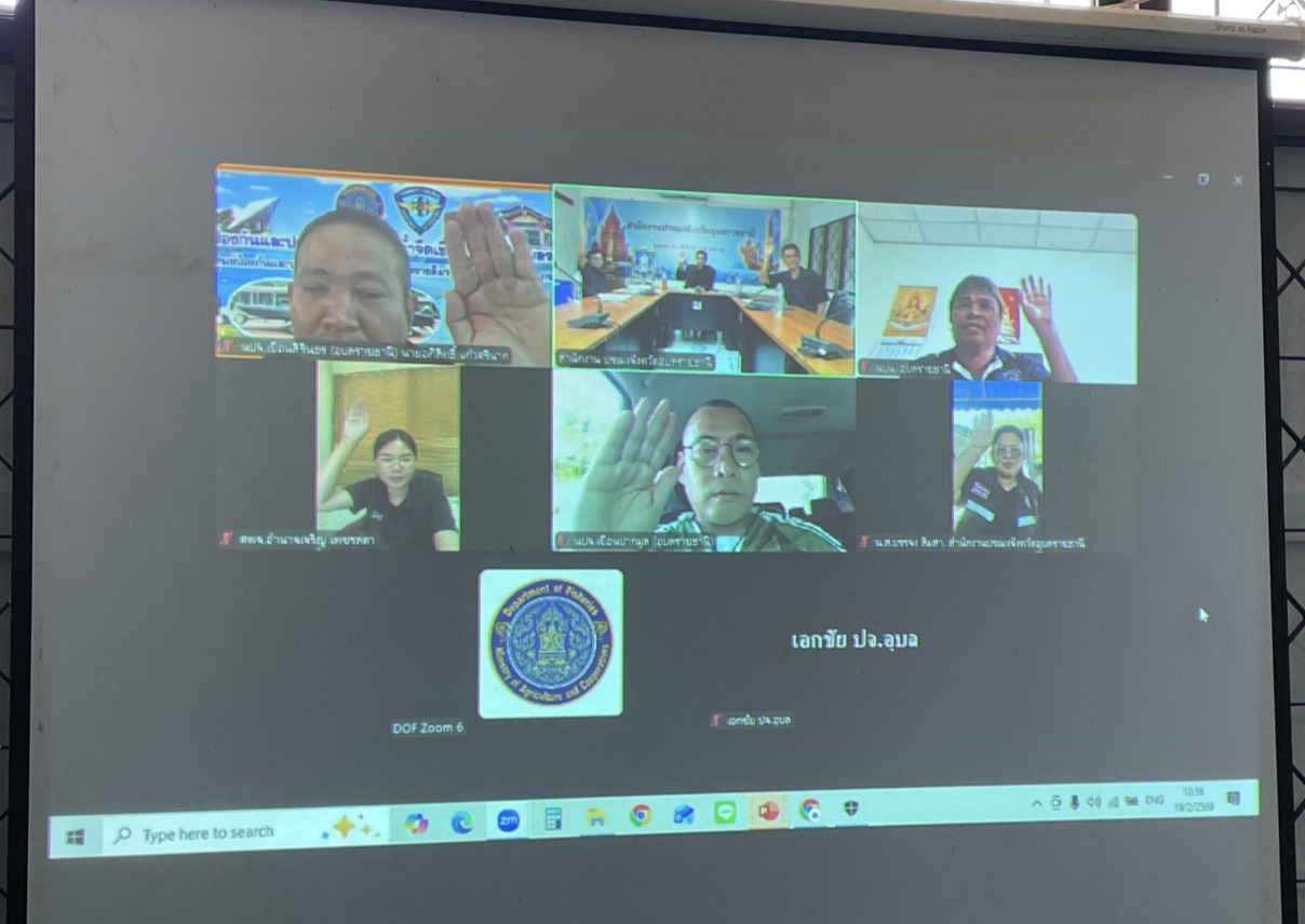 นายสุริยันต์  วรรณวงษ์ ประมงจังหวัดอุบลราชธานี พร้อมด้วยนายสุนทร  รุ่งเรือง หัวหน้ากลุ่มบริหารจัดการด้านการประมงนายวัชรเกียรติ  สวัสดิรักษา หัวหน้ากลุ่มบริหารและยุทธศาสตร์ และเจ้าหน้าที่สำนักงานประมงจังหวัดอุบลราชธานี ร่วมกับนายธีระชัย  พงศ์จรรยากุล ผู้อำนวยการศูนย์วิจัยและพัฒนาประมงน้ำจืดอุบลราชธานี และคณะกรรมการขับเคลื่อนนโยบายของกรมประมง (Fisheries Co-ordinator : FC ) ที่ประชุมผ่านระบบประชุมทางไกล Zoom Meetiing ประชุมเพื่อพิจารณาคัดเลือกอาสาสมัครดีเด่น ด้านเครือข่ายเฝ้าระวังการทำการประมง (ประมงอาสา) ประจำปีงบประมาณ พ.ศ. 2569