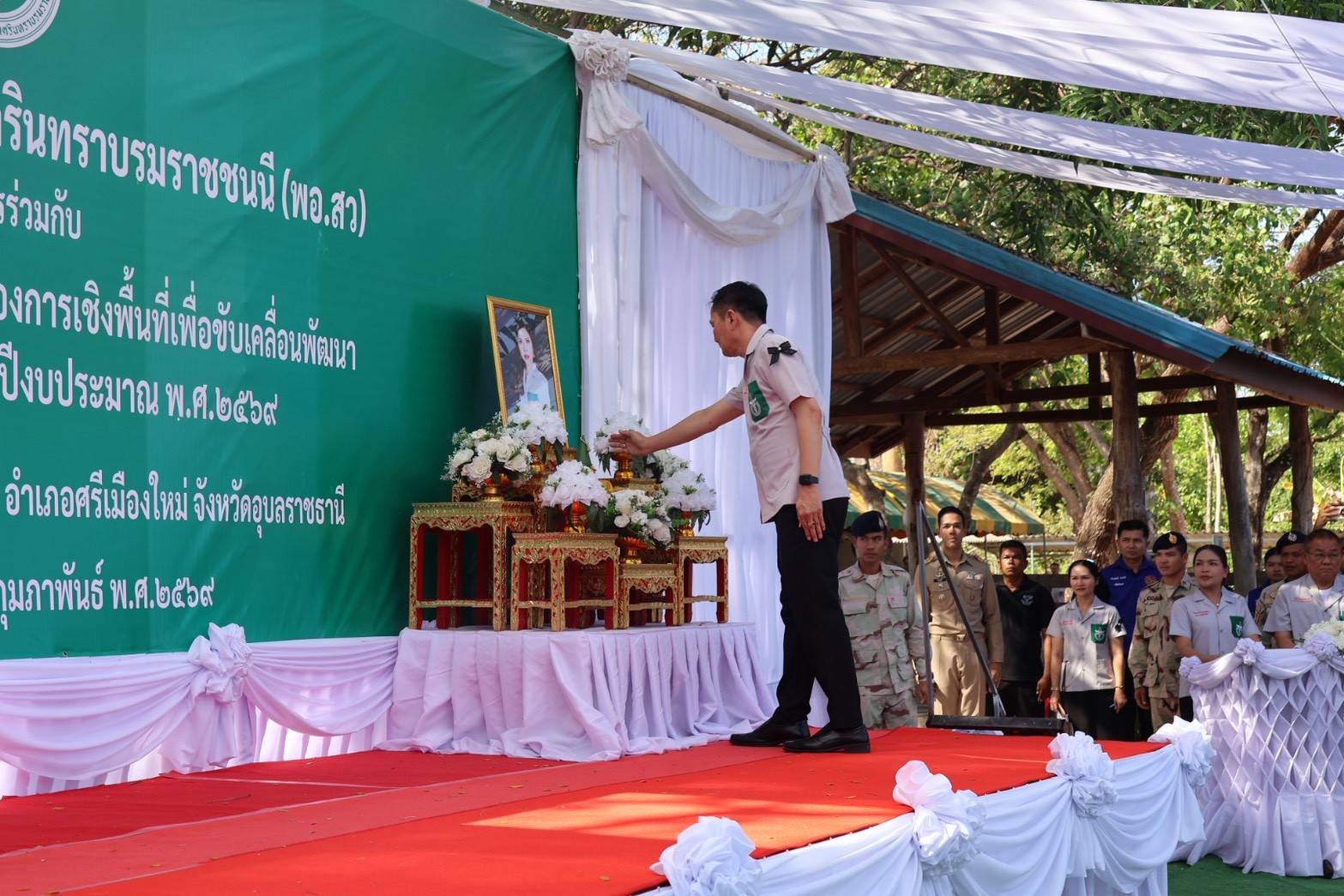 โดยมี ณรงค์ เทพเสนา ผู้ว่าราชการจังหวัดอุบลราชธานี เป็นประธานในพิธีเปิดหน่วยแพทย์เคลื่อนที่ (พอ.สว.) ประจำจังหวัดอุบลราชธานี พร้อมด้วย ฐิติวรดา เทพเสนา นายกเหล่ากาชาดจังหวัดอุบลราชธานี นายอำเภอศรีเมืองใหม่ หัวหน้าส่วนราชการ ผู้นำท้องถิ่น คณะครู นักเรียน และประชาชนในพื้นที่ เข้าร่วมกิจกรรมอย่างพร้อมเพรียง