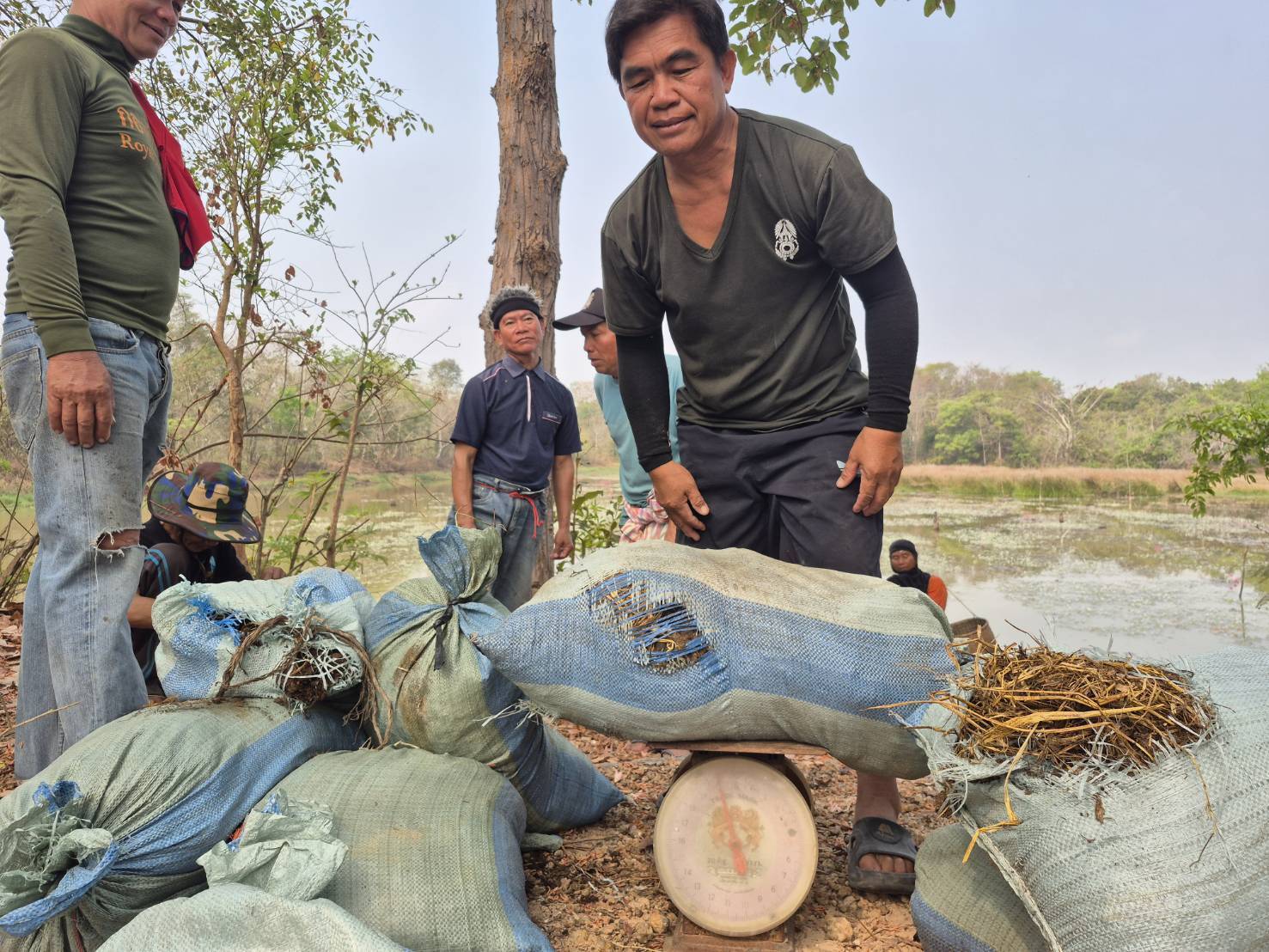 "ฟางมา…ปลาโต" ตามโครงการบริหารจัดการทรัพยากรประมง กิจกรรมบริหารจัดการทรัพยากรประมงน้ำจืด การเพิ่มผลผลิตในแหล่งน้ำชุมชนเพื่อเพิ่มรายได้และลดค่าครองชีพของประชาชน อำเภอพิบูลมังสาหาร จังหวัดอุบลราชธานี