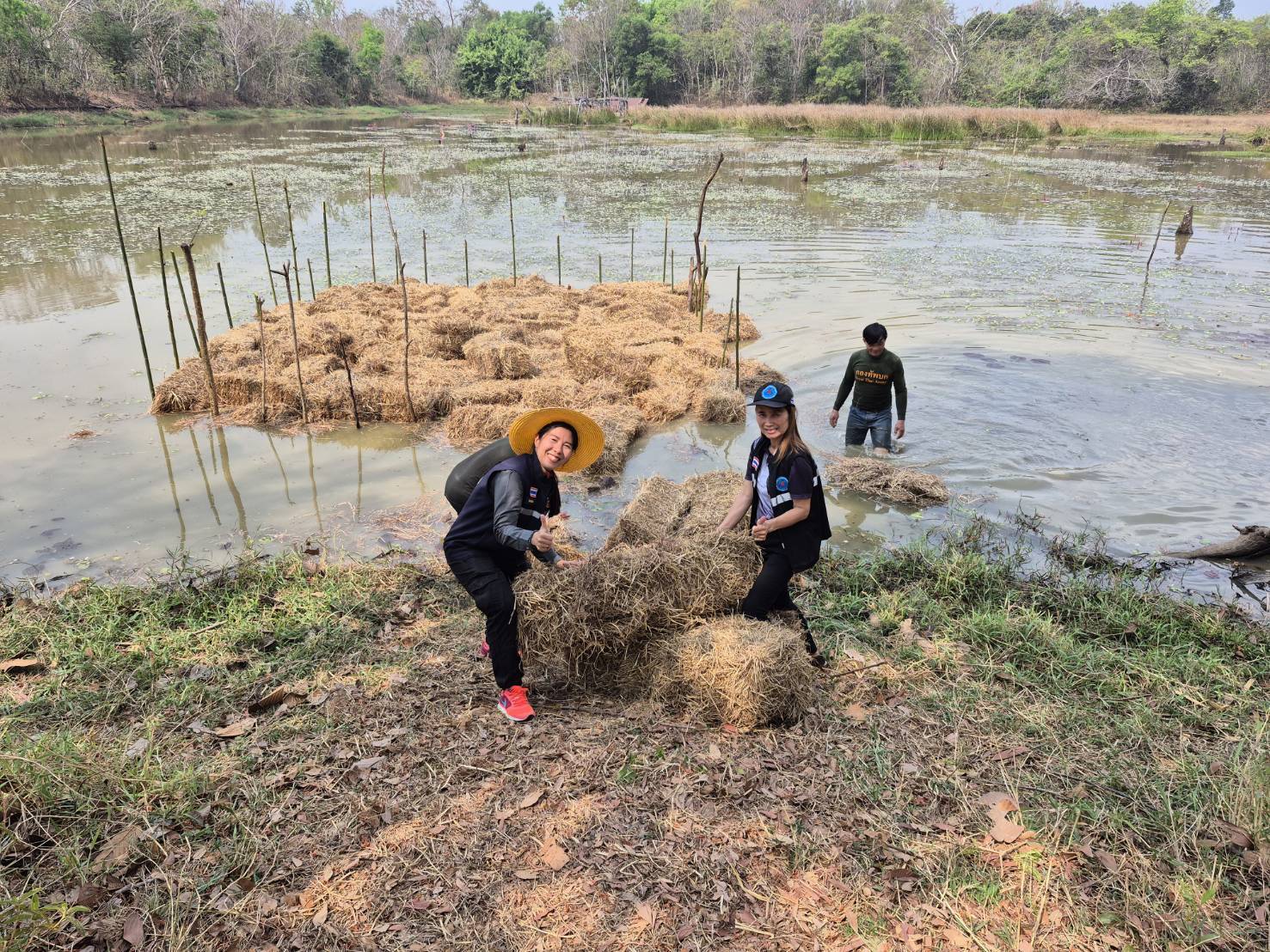 วันที่ 24 กุมภาพันธ์ 2569 นางสาวบุญเลี้ยง ทองหุล ประมงอำเภอพิบูลมังสาหาร ร่วมกับ คณะกรรมการแหล่งน้ำ และชาวบ้านชุมชนนาโพธิ์พัฒนา นำโดย นางสาวยุภาพร บุญชาติ ผู้ใหญ่บ้านหมู่ที่ 10 ตำบลนาโพธิ์ ร่วมกันดำเนินกิจกรรมสร้างอาหารธรรมชาติ (ฟางมา…ปลาโต) ในแหล่งน้ำหนองขวาง หมู่ที่ 10 ตำบลนาโพธิ์ อำเภอพิบูลมังสาหาร จังหวัดอุบลราชธานี ตามโครงการบริหารจัดการทรัพยากรประมง กิจกรรมบริหารจัดการทรัพยากรประมงน้ำจืด การเพิ่มผลผลิตในแหล่งน้ำชุมชนเพื่อเพิ่มรายได้และลดค่าครองชีพของประชาชน ประจำปีงบประมาณ 2569