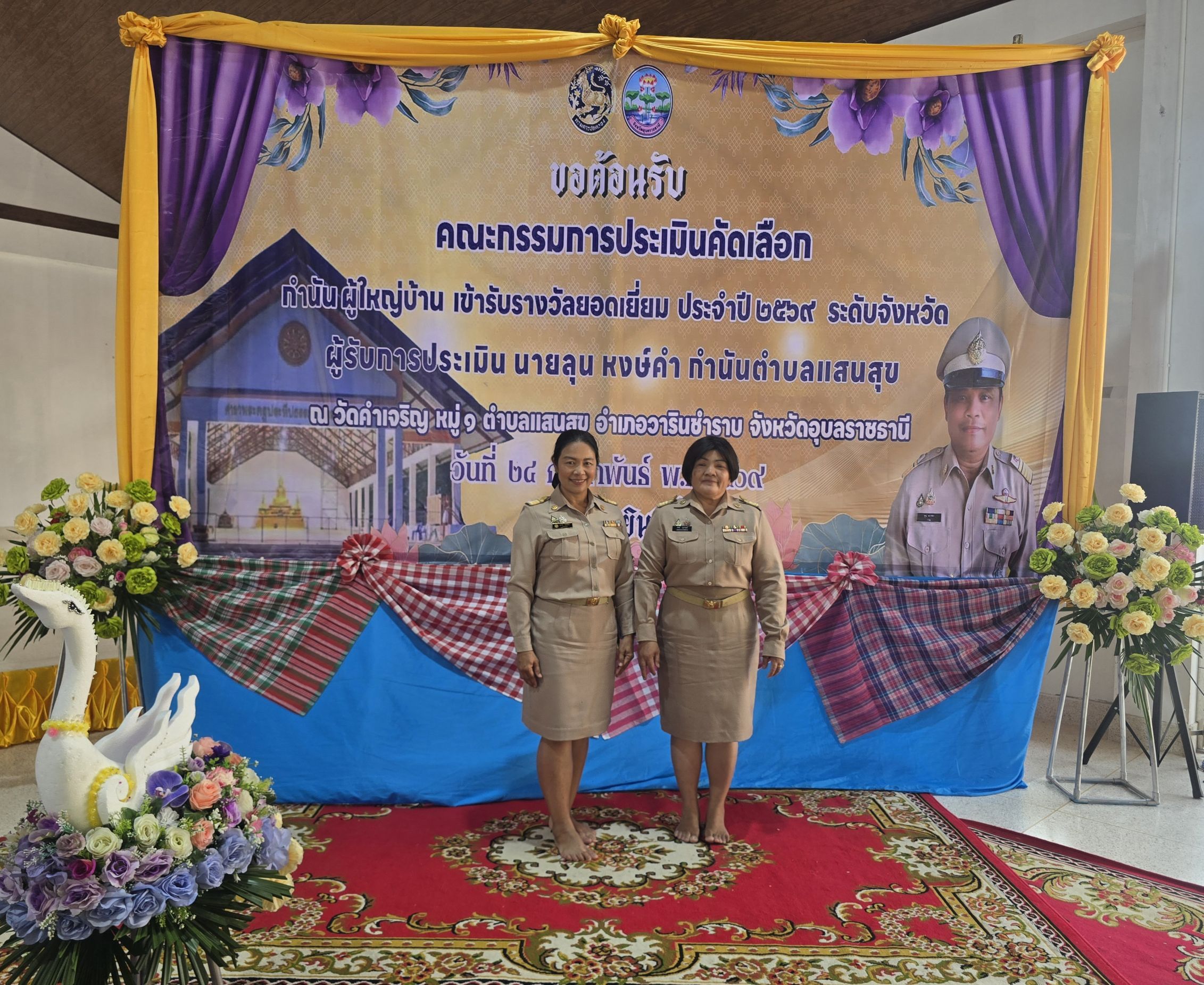 รายนายลุน หงษ์ทอง กำนันตำบลแสนสุข  ผู้เสนอผลงานเข้ารับรางวัลในครั้งนี้ ณ วัดคำเจริญ บ้านคำเจริญ หมู่ที่ 1 ตำบลแสนสุข อำเภอวารินชำราบ จังหวัดอุบลราชธานี