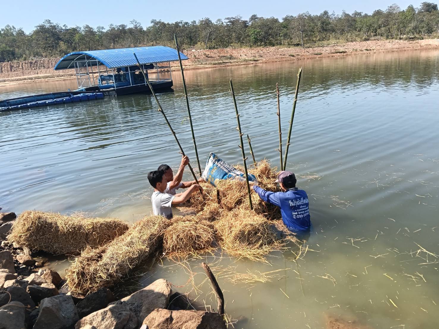 วันที่ 25 กุมภาพันธ์ 2569 ณ อ่างเก็บน้ำวังผีแต่งหมู่ที่ 9 บ้านโนนศาลา ตำบลสำโรงอำเภอโพธิ์ไทร จังหวัดอุบลราชธานี นางสาวปวริศา บุตรนามท้าวประมงอำเภอโพธิ์ไทร พร้อมด้วยคณะกรรมการแหล่งน้ำฯ เตรียมแหล่งน้ำโดยการสร้างอาหารธรรมชาติ (ฟางมา…ปลาโต) ตามโครงการบริหารจัดการทรัพยากรประมง กิจกรรมบริหารจัดการทรัพยากรประมงน้ำจืด การเพิ่มผลผลิตในแหล่งน้ำชุมชนเพื่อเพิ่มรายได้และลดค่าครองชีพของประชาชน ประจำปีงบประมาณ 2569