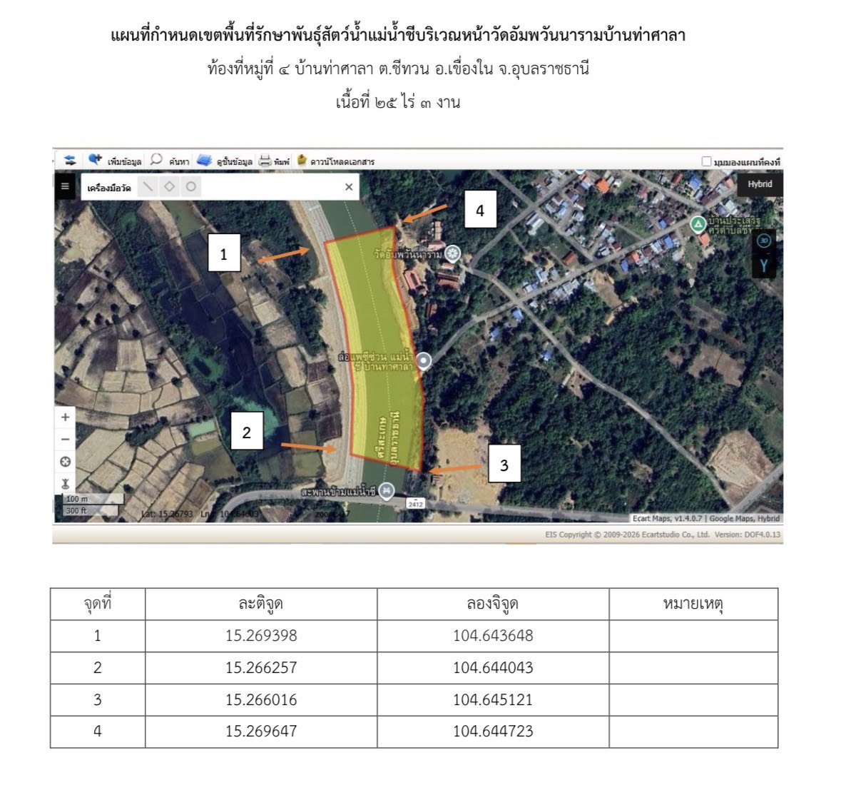 2. เขตพื้นที่รักษาพันธุ์สัตว์น้ำแม่น้ำชีบริเวณหน้าวัดอัมพวันนาราม บ้านท่าศาลา ม.4 ต.ชีทวน อ.เขื่องใน จ.อุบลราชธานี เมื่อได้ร่างแผนที่จะดำเนินการประชาคมในขั้นตอนต่อไป…