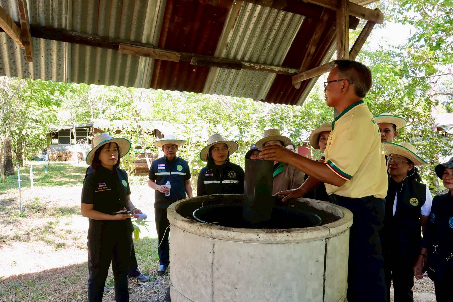 จากนั้นเวลา 14.30 ลงพื้นที่ ณ ศูนย์ถ่ายทอดเทคโนโลยีการพัฒนาที่ดินการใช้ประโยชน์จากบ่อน้ำไร่นานอกเขตชลประทาน ของนายถวิล วงศ์สามารถ หมู่ที่ 9 ตำบลเตย อำเภอม่วงสามสิบ จังหวัดอุบลราชธานี เพื่อติดตามงานตามนโยบาย อันเนื่องมาจากโครงการพระราชดำริและการจัดการแหล่งน้ำในไร่นา เพื่อการเกษตร และการสืบสานงานของพระบาทสมเด็จพระเจ้าอยู่หัวในหลวงรัชกาลที่ 9 ด้านเศรษฐกิจพอเพียง ด้านไร่นาสวนผสม ด้านเกษตรทฤษฎีใหม่และ ด้านพัฒนาที่ดิน ตลอดจนจุดดังกล่าว ยังเป็นจุด ศพก.กิจกรรมพืชผักไม้ผล ของอำเภอม่วงสามสิบ