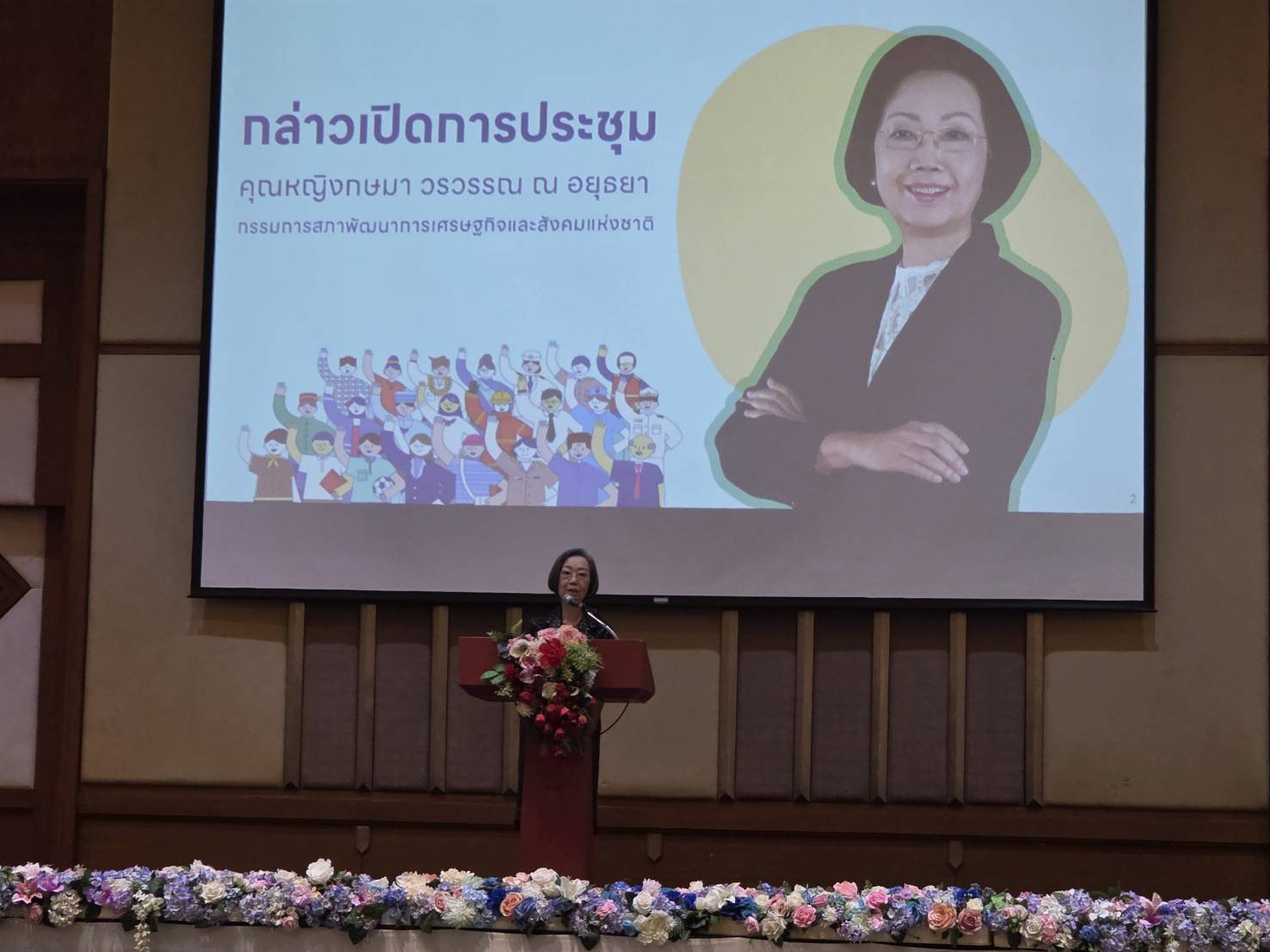 ในการประชุมครั้งนี้โดยมี คุณหญิงกษมา วรวรรณ ณ อยุธยา เป็นผู้กล่าวเปิดประชุม