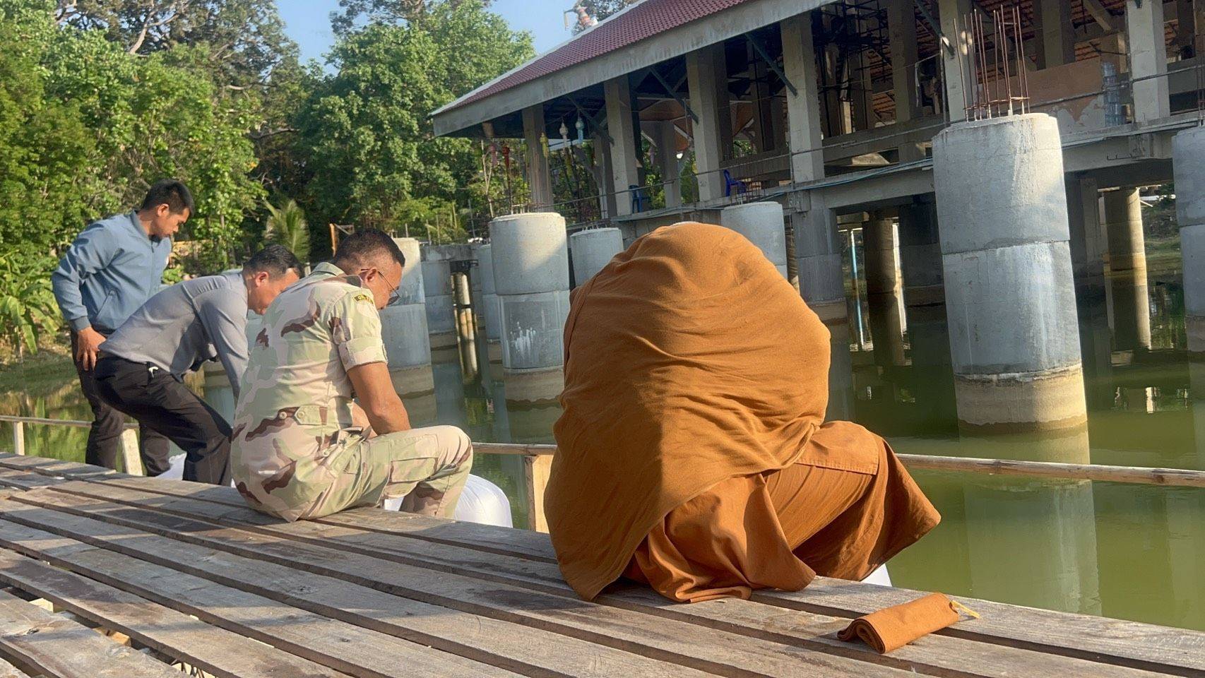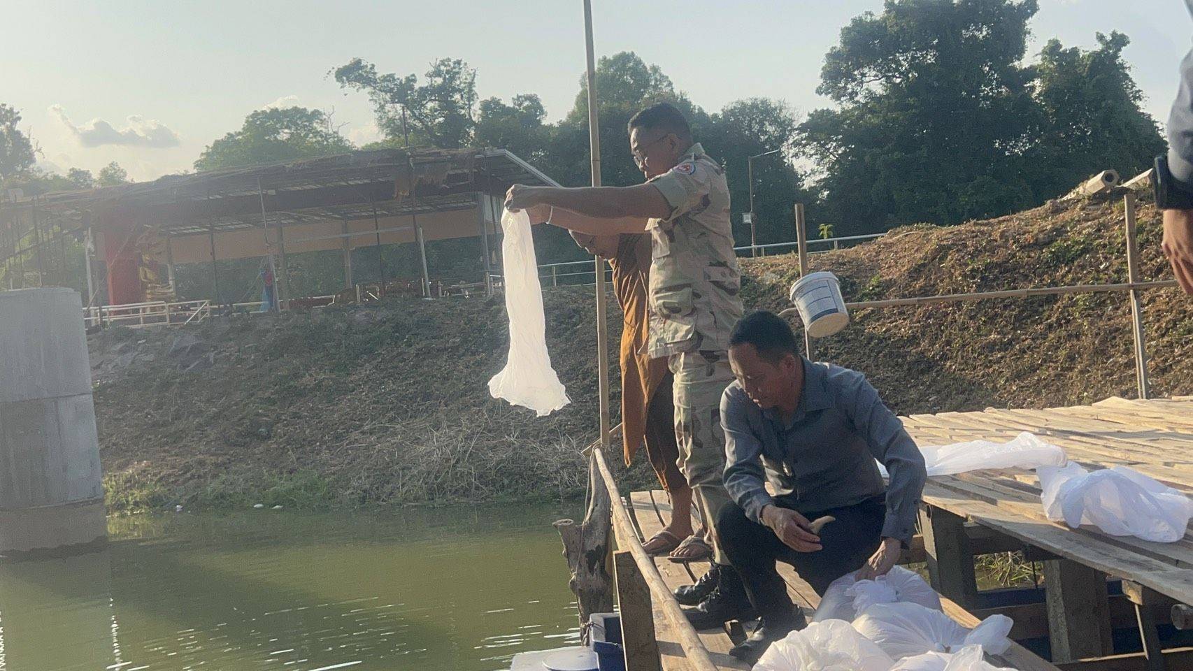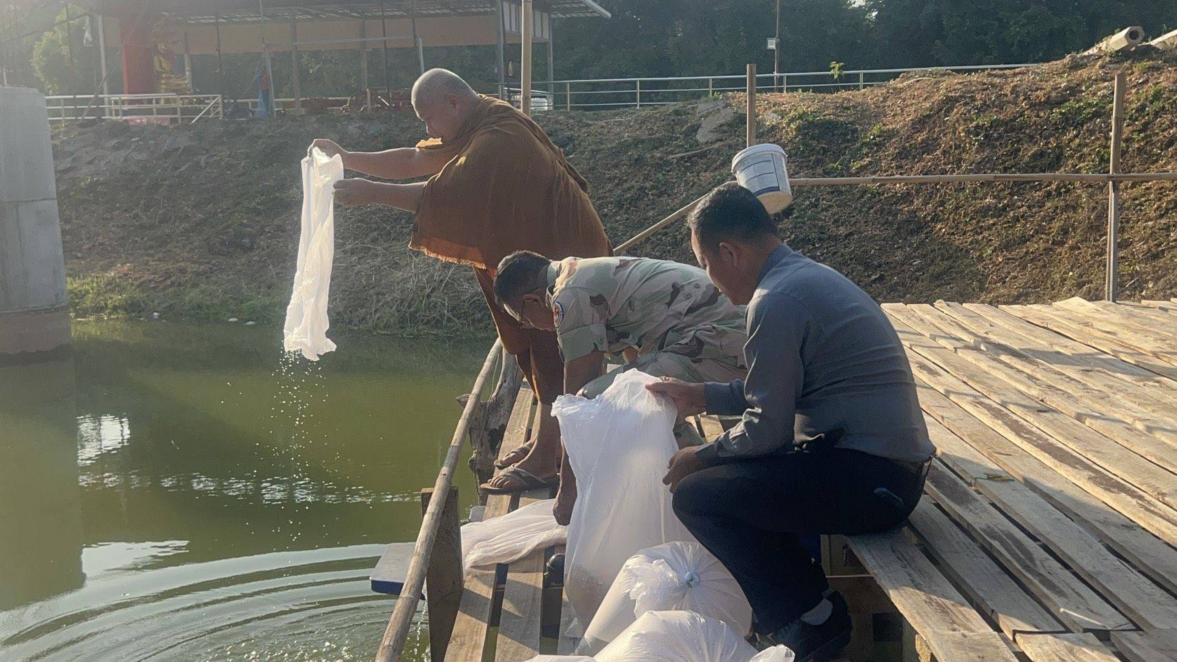 ประมงอำเภอเขื่องใน ร่วมถวายปลานิลแดง ณ บริเวณสระน้ำโบสถ์กลางน้ำ วัดป่ามหาธีราจารย์