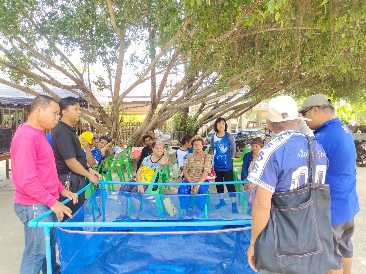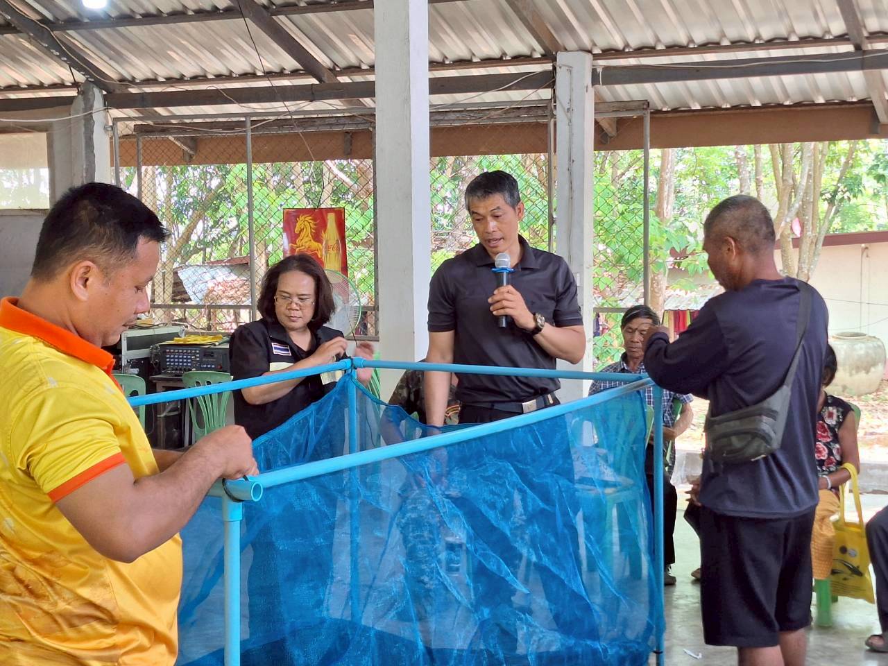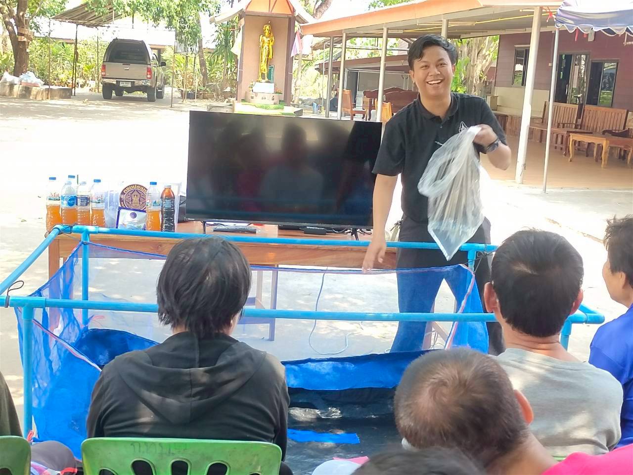 ในครั้งนี้ มีการให้คาวมรู้เบื้องต้นการเลี้ยงปลาดุกในกระชังบก  การเตรียมพื้นที่เลี้ยง การทำอาหารลดต้นทุนจากวัตถุดิบทางการเกษตร (รำ หยวกกล้วย) เพื่อให้เกษตรกรมีแหล่งอาหารโปรตีนไว้บริโภคในครัวเรือนและนำความรู้ไปต่อยอดในการประกอบอาชีพและเพิ่มรายได้ที่ยั่งยืน