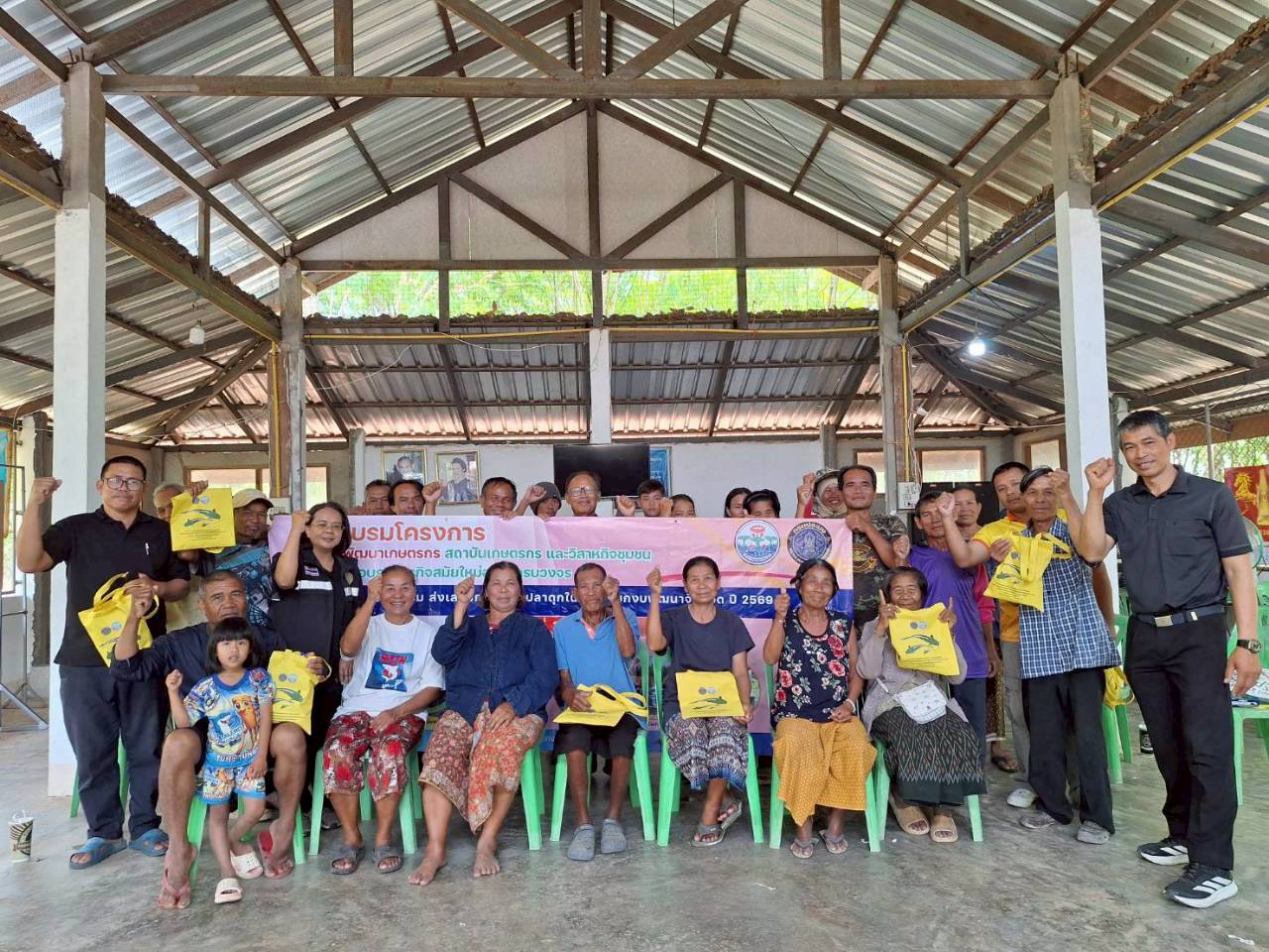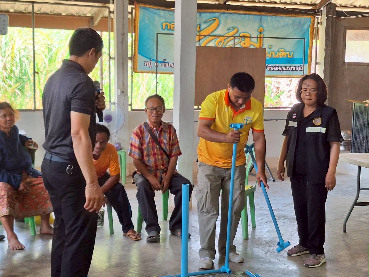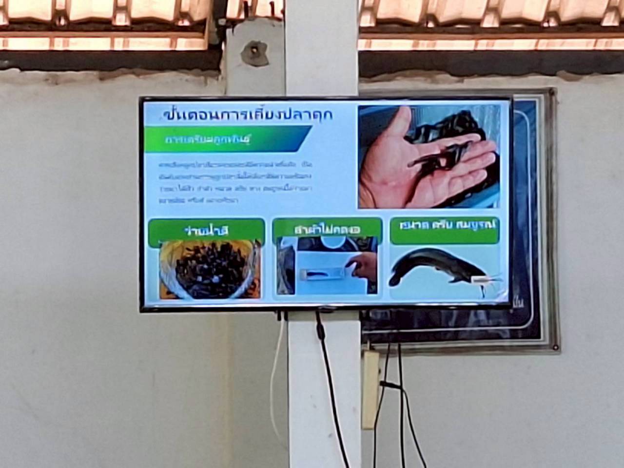 ในครั้งนี้ มีการให้คาวมรู้เบื้องต้นการเลี้ยงปลาดุกในกระชังบก  การเตรียมพื้นที่เลี้ยง การทำอาหารลดต้นทุนจากวัตถุดิบทางการเกษตร (รำ หยวกกล้วย) เพื่อให้เกษตรกรมีแหล่งอาหารโปรตีนไว้บริโภคในครัวเรือนและนำความรู้ไปต่อยอดในการประกอบอาชีพและเพิ่มรายได้ที่ยั่งยืน