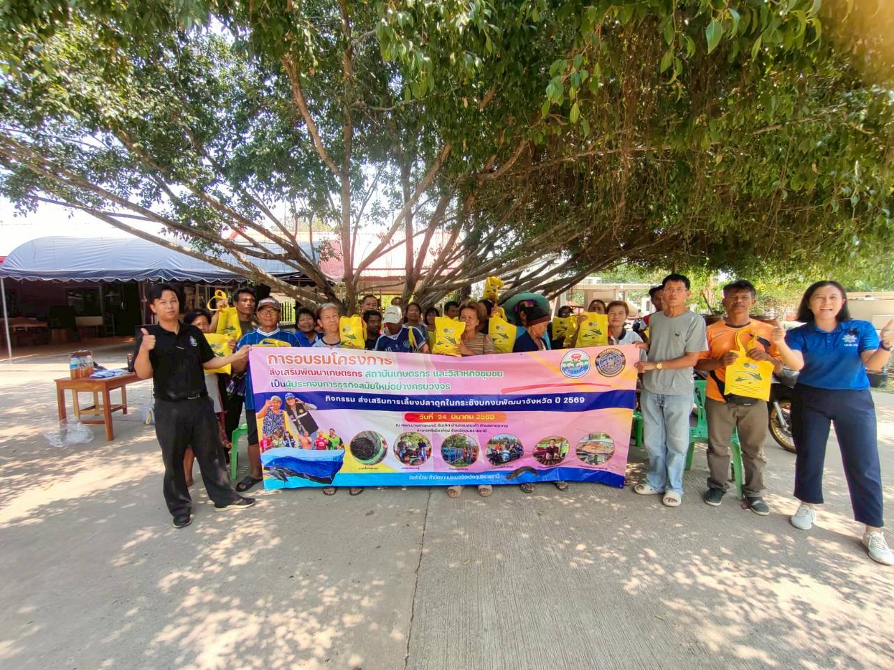 ณ ตำบลสองคอน อำเภอโพธิ์ไทร จังหวัดอุบลราชธานี วันที่ 25 มีนาคม 2569 นางสาวศิริรัตน์ อุทัยวัฒน์  รักษาการในตำแหน่งหัวหน้ากลุ่มพัฒนาและส่งเสริมอาชีพการประมง นางสาวปวริศา บุตรนามท้าว ประมงอำเภอโพธิ์ไทร พร้อมเจ้าหน้าที่กลุ่มพัฒนาและส่งเสริมอาชีพการประมง สำนักงานประมงจังหวัดอุบลราชธานี  จัดอบรมเกษตรกรที่เข้าร่วมโครงการส่งเสริมพัฒนาเกษตรกร สถาบันเกษตรกร และวิสาหกิจชุมชนเป็นผู้ประกอบการธุรกิจสมัยใหม่อย่างครบวงจร กิจกรรมหลัก ส่งเสริมการเลี้ยงปลาดุกในกระชังบก จำนวนทั้งสิ้น 50 ราย
