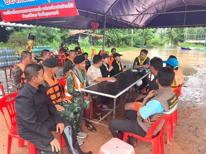 นายสนอง มะลัยขวัญ นายอำเภอสิรินธร พร้อมด้วยนางสาวกานต์รวี รักผล ประมงอำเภอสิรินธร, เกษตรอำเภอสิรินธร, ปศุสัตว์อำเภอสิรินธร, นายกองค์การบริหารส่วนตำบล และสมาชิกกาชาด ติดตามพื้นที่ที่ได้รับผลกระทบจากน้ำท่วมอำเภอสิรินธร