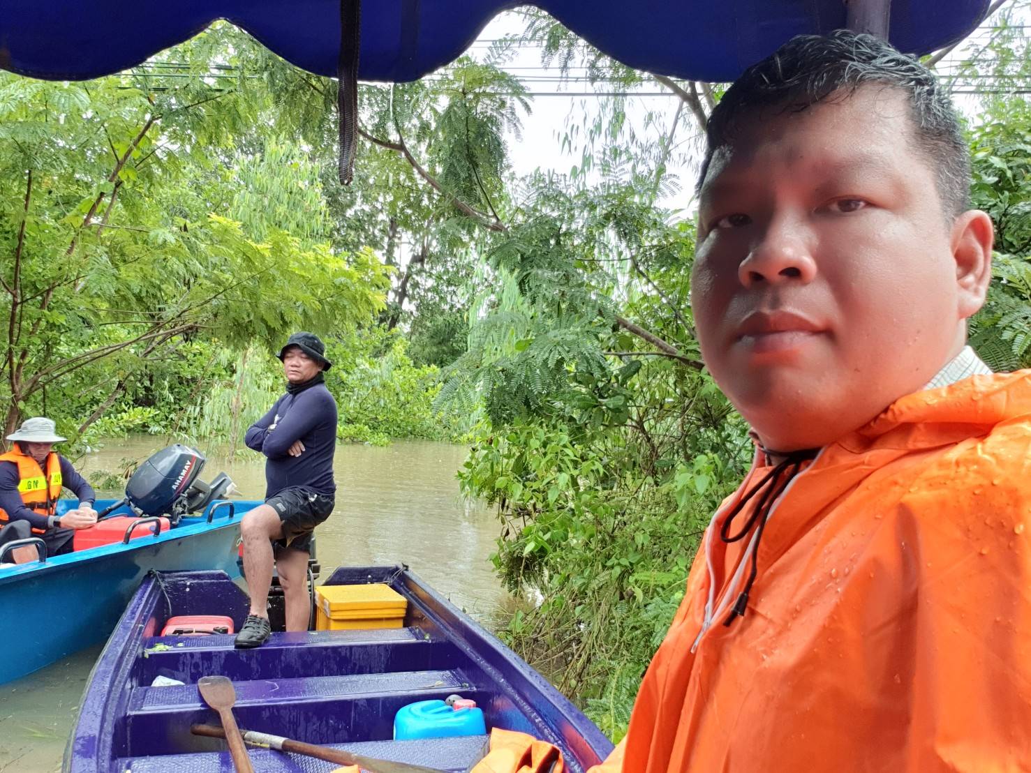 นายศุภวัฒน์ เที่ยงผดุง ประมงอำเภอดอนมดแดง นายศุภกิจ คำแก้ว หน่วยหน้าหน่วยป้องกันและปราบปรามประมงน้ำจืดเขื่อนปากมูล และคณะ ร่วมกับอำเภอดอนมดแดง อพยพผู้ประสบอุทกภัย จากพายุ โพดุลและคาจิกิ ในเขตตำบลท่าเมือง อำเภอดอนมดแดง จังหวัดอุบลราชธานี
