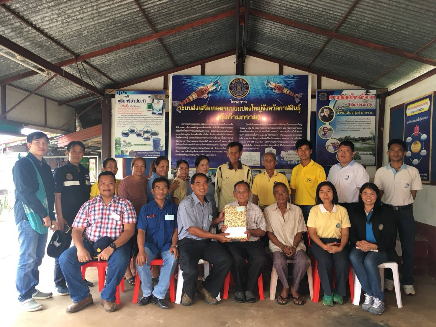 นายประชุม ดวนใหญ่ หัวหน้ากลุ่มพัฒนาและส่งเสริมอาชีพการประมง พร้อมเจ้าหน้าที่กลุ่ม นำคณะประมงอำเภอ ข้าตรวจเยี่ยมกิจกรรมแปลงใหญ่(กุ้งก้ามกราบัวบาน) และสนทนาแลกเปลี่ยนแนวคิดร่วมกับคณะกรรมการ โครงการระบบส่งเสริมเกษตรแบบแปลงใหญ่จังหวัดกาฬสินธุ์  (กุ้งก้ามกราม)