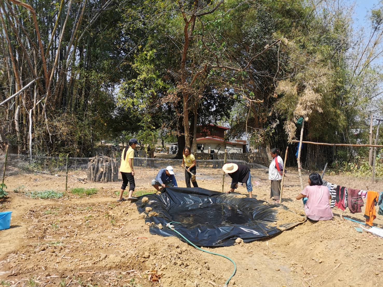 ราย นางเก้า วงษ์สอน 72 ม.6 ต.นาสะไม  ได้ดำเนินการจัดเตรียมบ่อพลาสติก เพื่อเตรียมมอบพันธุ์กบต่อไป