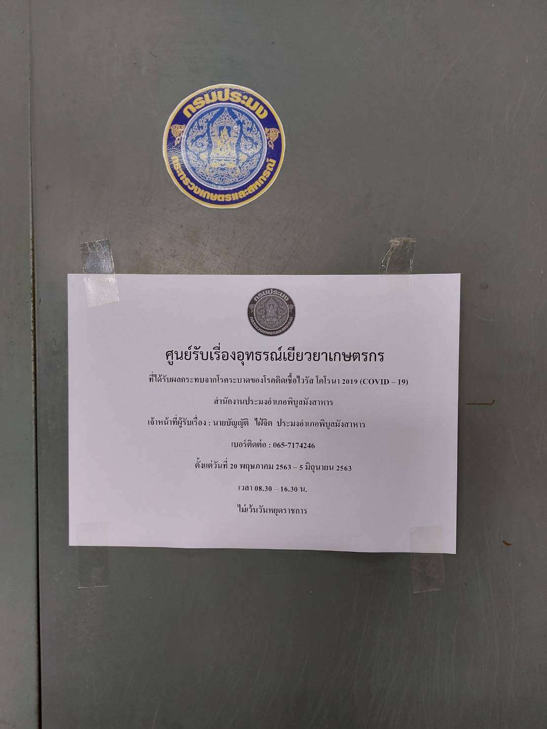 สำนักงานประมงอำเภอพิบูลมังสาหาร เปิดศูนย์รับเรื่องอุทธรณ์เยียวยาเกษตรกร ที่ได้รับผลกระทบจากโรคติดเชื้อไวรัส โคโรน่า 2019 (COVID-19)