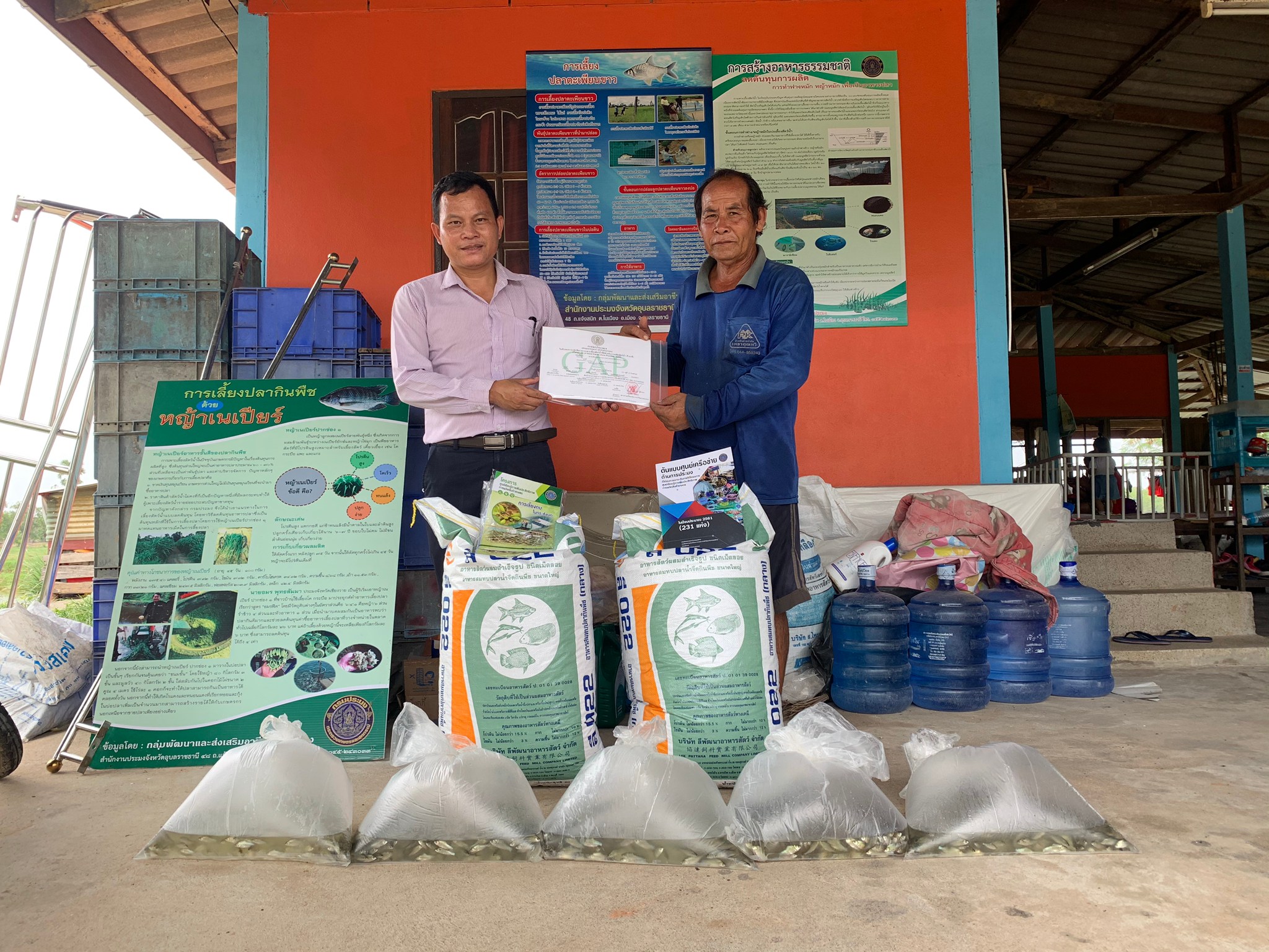 ประมงอำเภอเขื่องใน มอบปัจจัยการผลิต แก่ศูนย์เรียนรู้การเพิ่มผลผลิตสินค้าการเกษตร (ศพก) เครือข่ายด้านประมง อำเภอเขื่องใน จังหวัดอุบลราชธานี