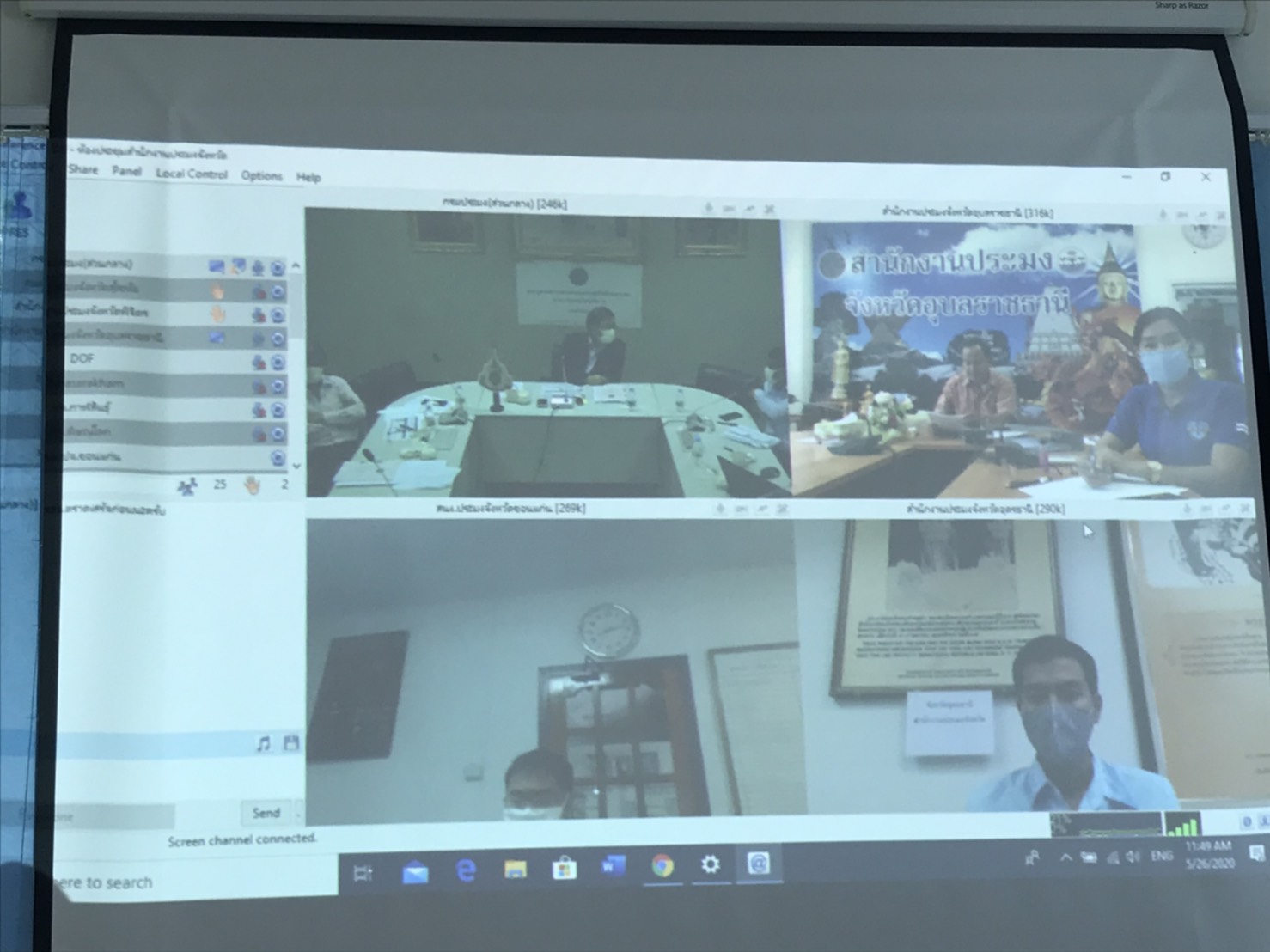 วันที่ 26 พฤษภาคม 2563 เวลา 10.00 น. นายศุภกิตติ์ ใสกระจ่าง ประมงจังหวัดอุบลราชธานี พร้อมด้วยนางอัจฉราภรณ์  อมรสิน เจ้าพนักงานประมงปฏิบัติงาน และคณะ ร่วมประชุม VDO Conference การขับเคลื่อนโครงการสร้างรายได้จากอาชีพประมงในแหล่งน้ำชุมชน ภายใต้แผนปฏิบัติการฟื้นฟู เยียวยา เกษตรกรผู้ประสบภัยฝนทิ้งช่วงและอุทกภัย ปี 2563 พร้อมทั้งรายงานความคืบหน้าการส่งมอบพันธุ์กุ้งก้ามกรามให้แหล่งน้ำชุมชน และผลการประเมินอัตราการเจริญเติบโตของกุ้งก้ามกรามหลังจากปล่อยไปแล้ว 1 เดือน ให้ประธานในที่ประชุมทราบ