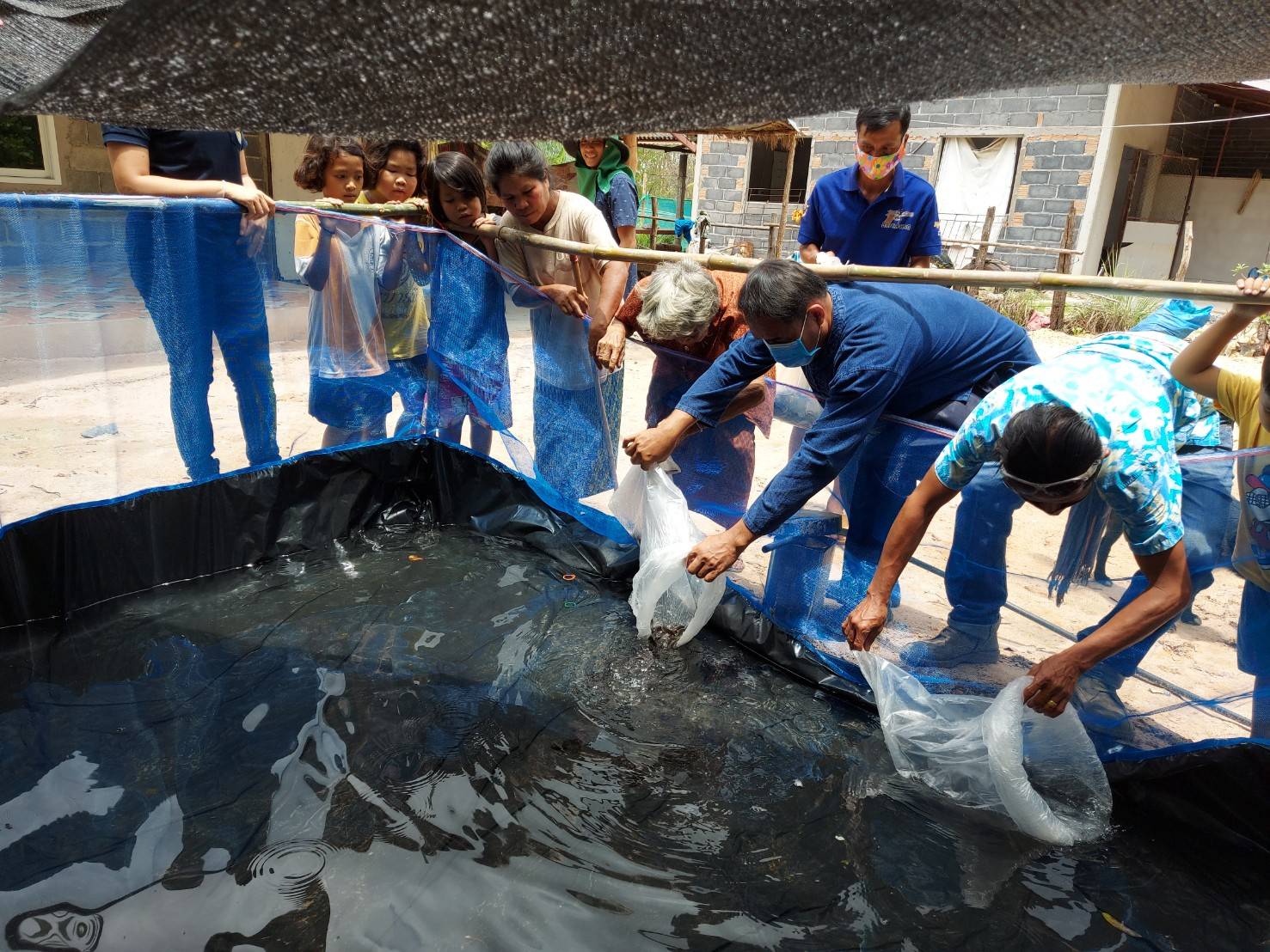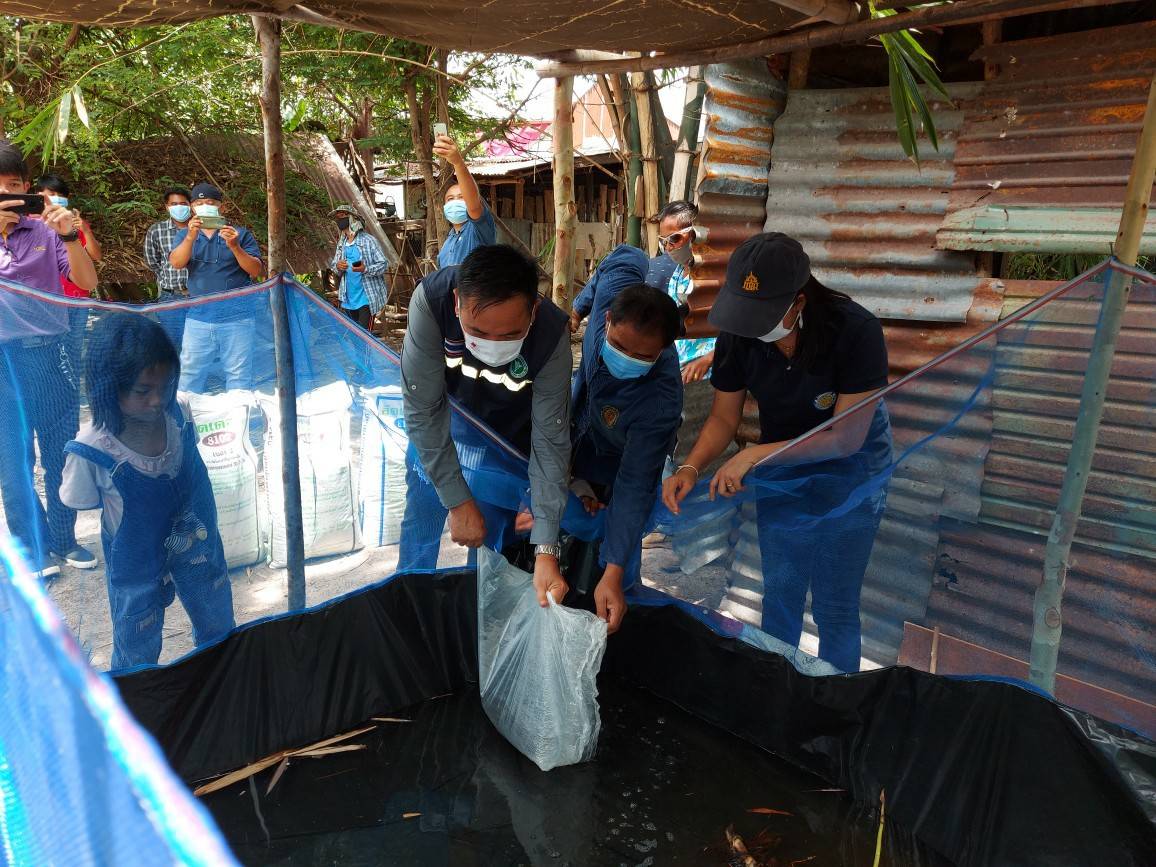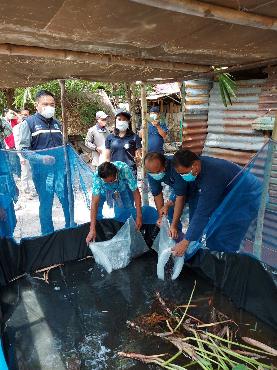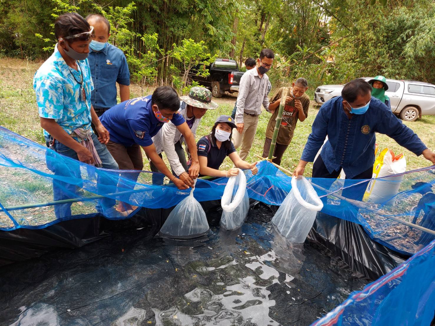วันที่ 29 พฤษภาคม 2563 นายศุภกิตติ์ ใสกระจ่าง ประมงจังหวัดอุบลราชธานี มอบหมายให้นายประชุม ดวนใหญ่ หัวหน้ากลุ่มส่งเสริมและพัฒนาอาชีพการประมง พร้อมด้วยนายวุฒิชาติ เชื้อชม เจ้าพนักงานประมง, นางสาวกานต์รวี รักผล ประมงอำเภอสิรินธร ร่วมกับนายวรรณภา นาคูณ ประธานชมรมกลุ่มผู้เลี้ยงปลากระชัง, นายนิคม สาดแฝง ตะวันฟาร์ม, นายทินกร จันทร์สมุทร ตัวแทนบมจ.เบทาโกร และคุณจีรวัฒน์ จันทร์มนี บจ.ธนวัฒน์ ฟาร์ม 2019 ลงพื้นที่มอบกระชังบก, มอบพันธุ์ปลาดุก 600 ตัว, มอบอาหารปลา 3 กระสอบต่อครัวเรือน และมอบพันธุ์ปลากินพืช 3,000 ตัว แก่ครัวเรือนตกเกณฑ์รายได้ จปฐ. ปี 2562 ตามโครงการ "ครัวเรือนพ้นจน คนอุบลไม่ทิ้งใครไว้ข้างหลัง" ของจังหวัดอุบลราชธานี เพื่อพัฒนาส่งเสริมอาชีพด้านประมง และสร้างความมั่นคงด้านอาหาร จำนวน 4 ครัวเรือน ที่สำนักงานประมงจังหวัดอุบลราชธานีรับผิดชอบ ในเขตพื้นที่อำเภอสิรินธร