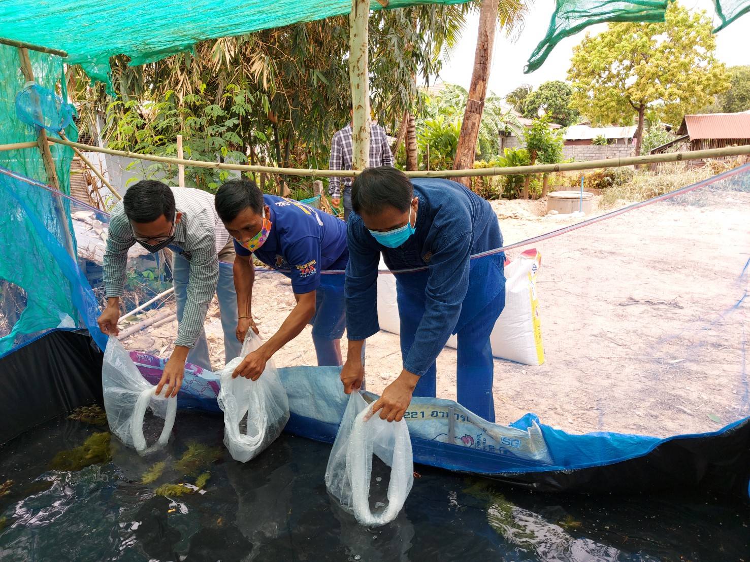 หัวหน้ากลุ่มส่งเสริมและพัฒนาอาชีพการประมง ประมงอำเภอสิรินธร ประธานชมรมกลุ่มผู้เลี้ยงปลากระชัง มอบพันธุ์ปลากินพืช 3,000 ตัว แก่ครัวเรือนตกเกณฑ์รายได้ จปฐ. ปี 2562 ตามโครงการ "ครัวเรือนพ้นจน คนอุบลไม่ทิ้งใครไว้ข้างหลัง" ของจังหวัดอุบลราชธานี