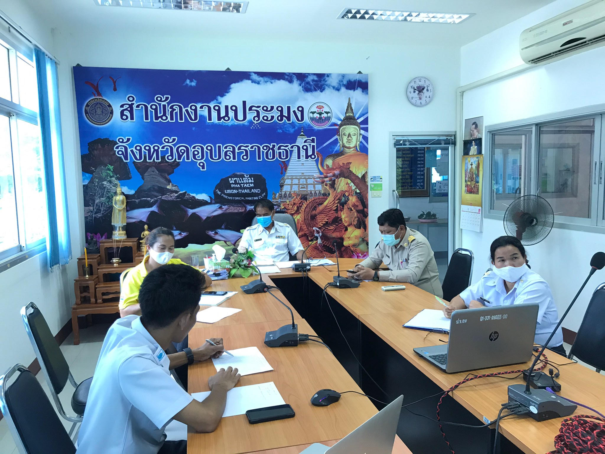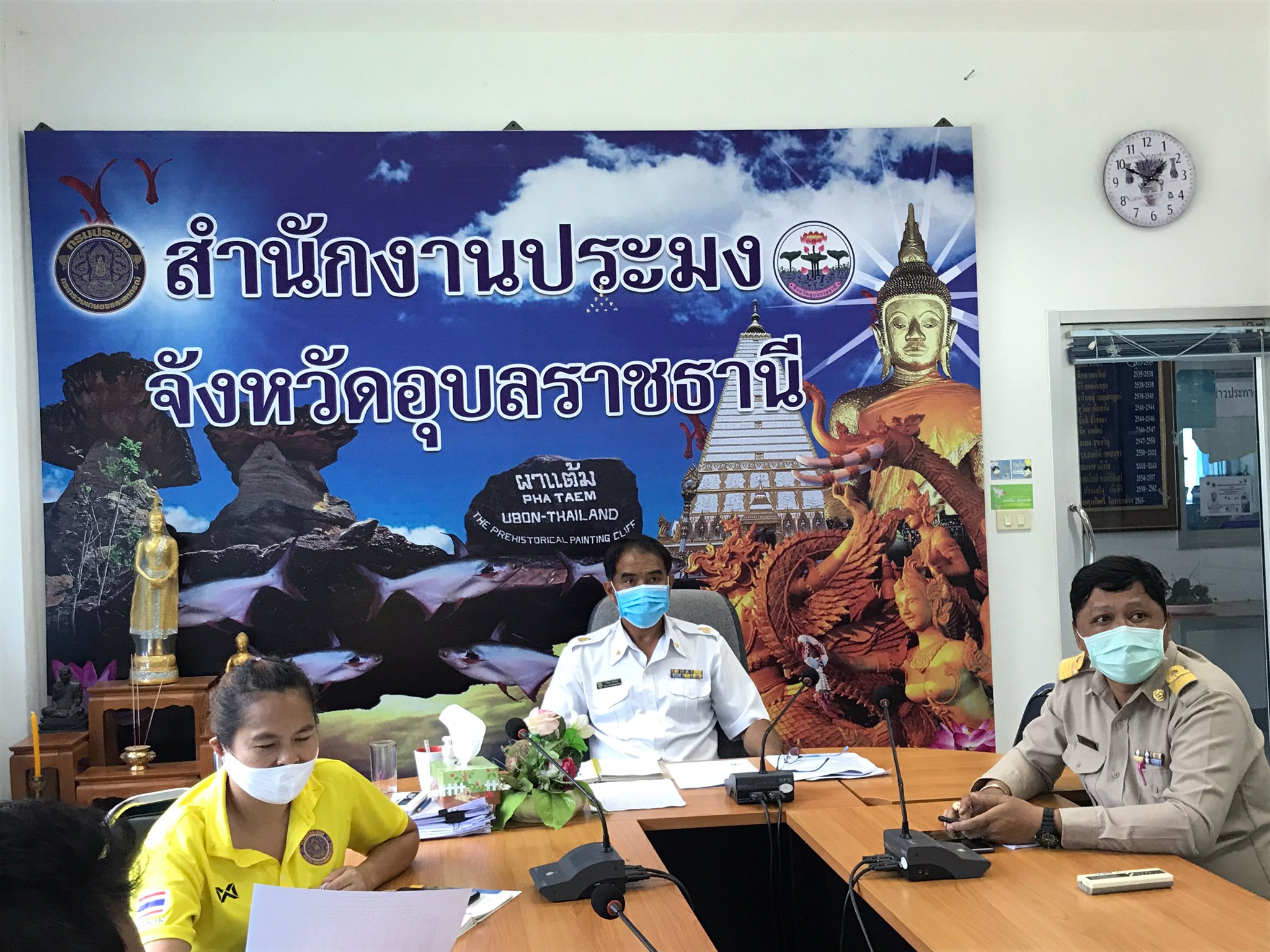 วันนี้ (1 มิถุนายน 2563) เวลา 13.00 น. นายศุภกิตติ์ ใสกระจ่าง ประมงจังหวัดอุบลราชธานี มอบหมายให้ นายประชุม ดวนใหญ่ หัวหน้ากลุ่มพัฒนาและส่งเสริมอาชีพประมง พร้อมด้วย นางเพชรรัตน์ สมเสนาะ หัวหน้ากลุ่มบริหารและยุทธศาสตร์ นายภราดร เอียดแก้ว ประมงอำเภอเมืองอุบลราชธานี และเจ้าหน้าที่สำนักงานประมงจังหวัดอุบลราชธานี เข้าร่วมประชุมทางไกล VDO Conference การดำเนินงานโครงการพัฒนาเสริมทางเลือกอาชีพประมง การเลี้ยงปลานิลแปลงเพศในบ่อดิน ตามแผนปฏิบัติการฟื้นฟู เยียวยา เกษตรกรผู้ประสบภัยฝนทิ้งช่วงและอุทกภัย ปี 2562