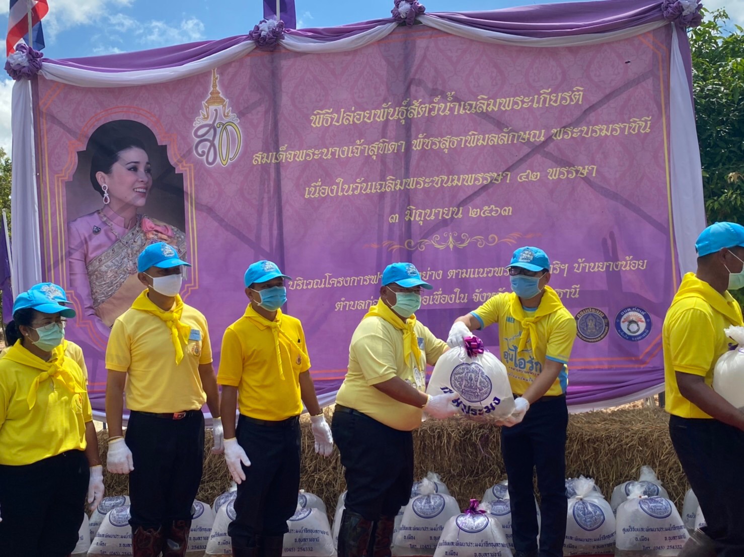 วันที่ 3 มิถุนายน 2563 เวลา 10.00 น. สำนักงานประมงจังหวัดอุบลราชธานีร่วมกับหน่วยงานในสังกัดกรมประมงจังหวัดอุบลราชธานี จัดพิธีปล่อยพันธุ์สัตว์น้ำเฉลิมพระเกียรติเนื่องในวันเฉลิมพระชนมพรรษาสมเด็จพระนางเจ้าสุทิดา พัชรสุธาพิมลลักษณ พระบรมราชีนี ณ บริเวณโครงการฟาร์มตัวอย่าง ตามแนวพระราชดำริฯ บ้านยางน้อย ตำบลก่อเอ้ อำเภอเขื่องใน จังหวัดอุบลราชธานี โดยมีนายสฤษดิ์ วิฑูรย์ ผู้ว่าราชการจังหวัดอุบลราชธานีเป็นประธาน และมอบพันธุ์สัตว์น้ำไปปล่อยตามแหล่งน้ำสาธารณะในพื้นที่ รวมจำนวนทั้งสิ้น 500,000 ตัว