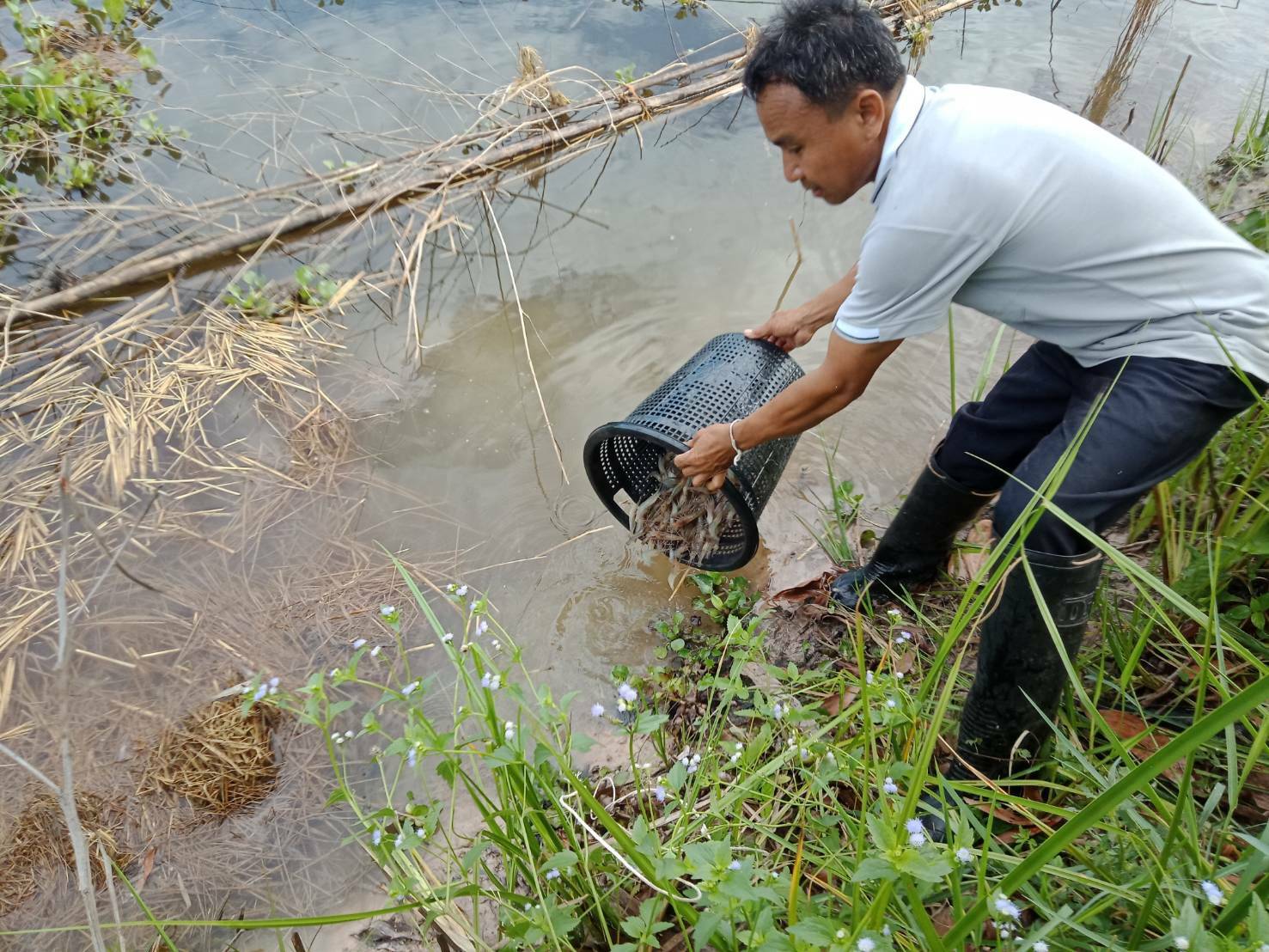 วันที่ 4 มิถุนายน 2563 นางสาวบุญเลี้ยง ทองหุล ประมงอำเภอสว่างวีระวงศ์ ร่วมกับคณะกรรมการแหล่งน้ำประจำชุมชนหนองแวง ม.7 ต.สว่าง อ.สว่างวีระวงศ์ จ.อุบลราชธานี ดำเนินการปล่อยพันธุ์กุ้งก้ามกราม ลงสู่หนองแวง ตามโครงการสร้างรายได้จากอาชีพประมงในแหล่งน้ำชุมชน