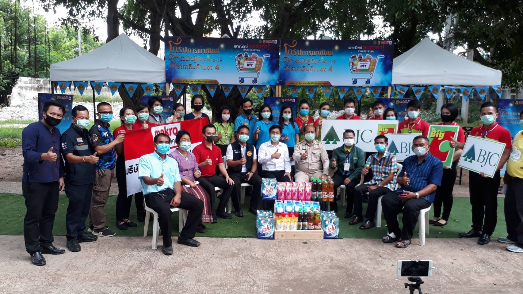 การแถลงข่าวโครงการพานิชย์ร่วมใจสู้ภัยโควิด 19 ลดราคาสินค้า Lot 4  ณ บริเวณหอประชุมอำเภอเขื่องใน