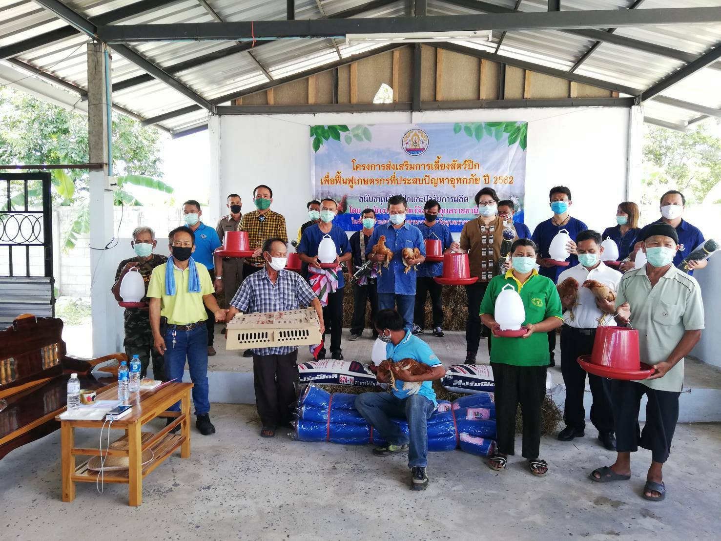 ประมงอำเภอพิบูลมังสาหารร่วมมอบปัจจัยการผลิตโครงการส่งเสริมการเลี้ยงสัตว์ปีก เพื่อฟื้นฟูเกษตรกรที่ประสบอุทกภัย ปี 2562