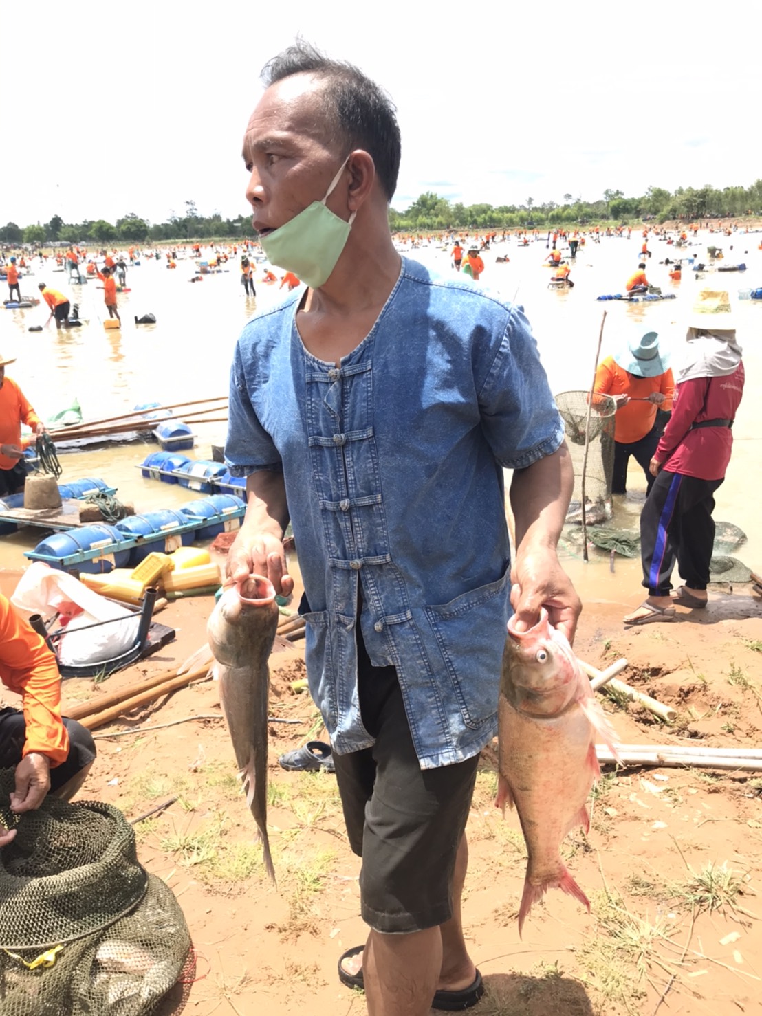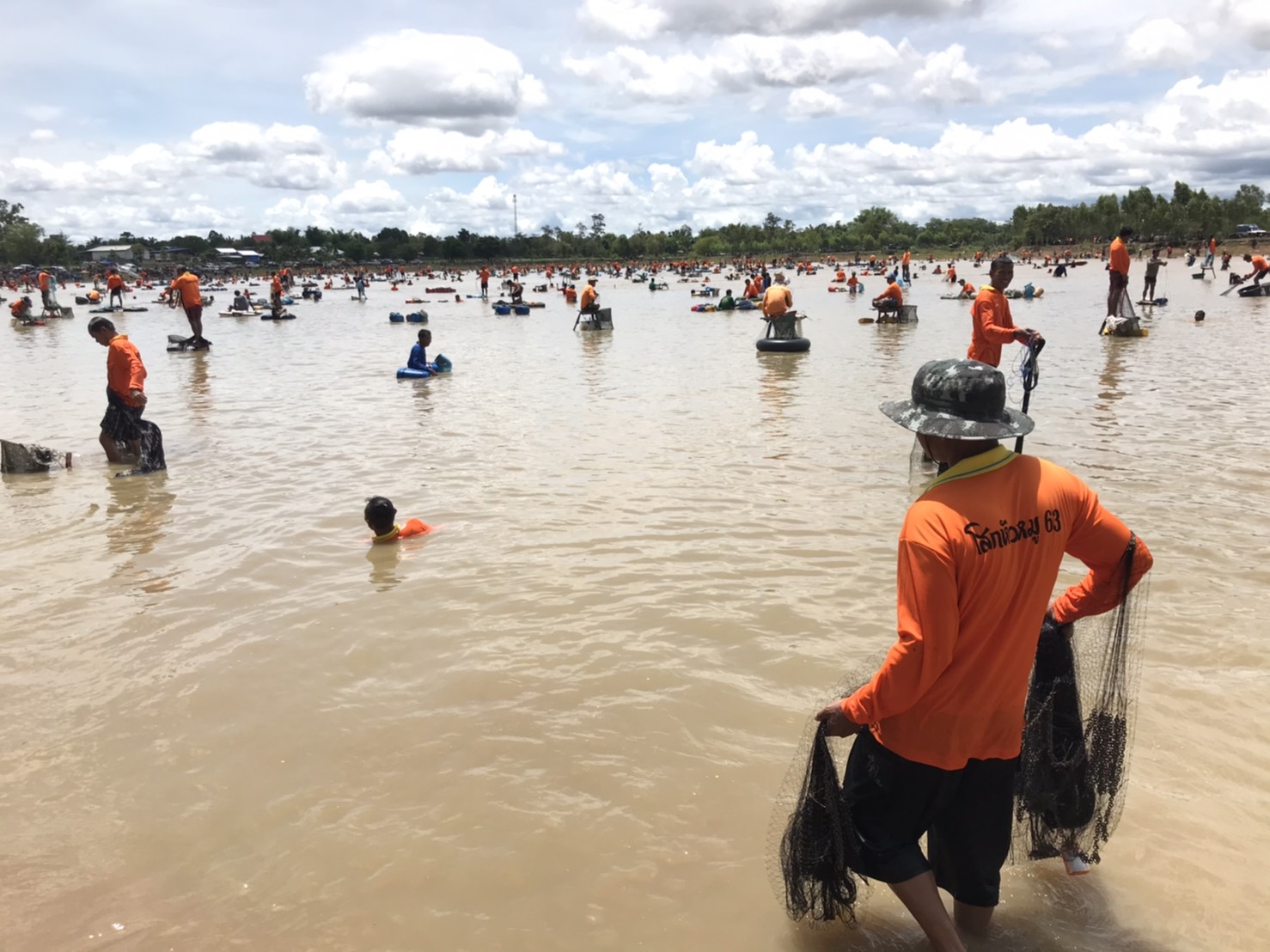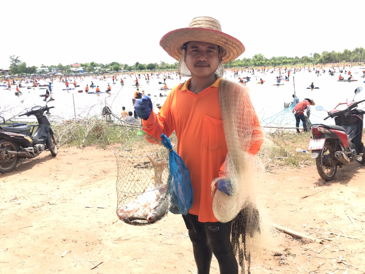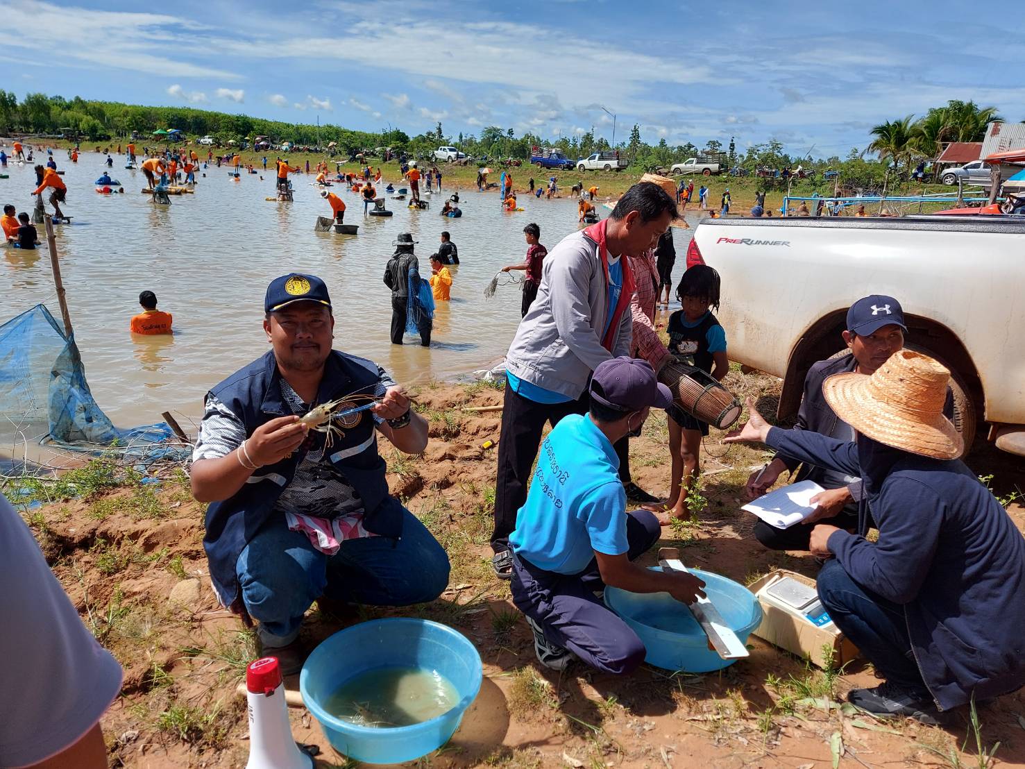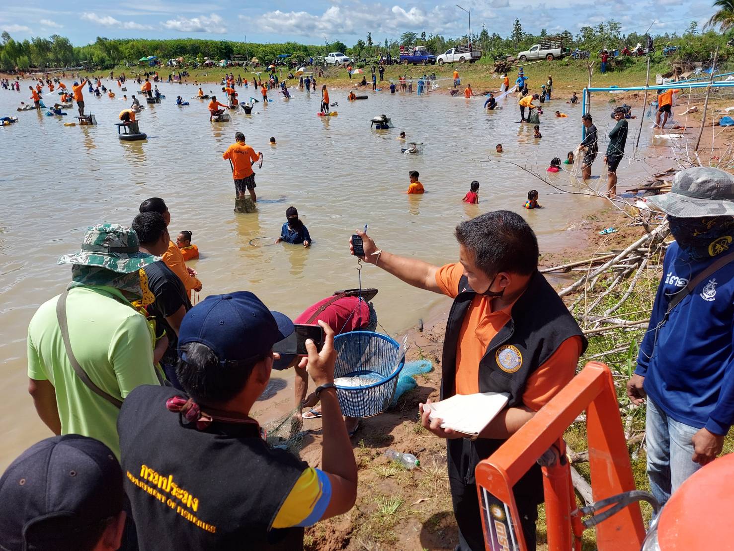 งานลงแหจับปลาและจัดเก็บข้อมูลผลผลิต ณ อ่างเก็บน้ำห้วยเทียม ในโครงการธนาคารผลผลิตเกษตรด้านการประมง อำเภอบุณฑริก จังหวัดอุบลราชธานี