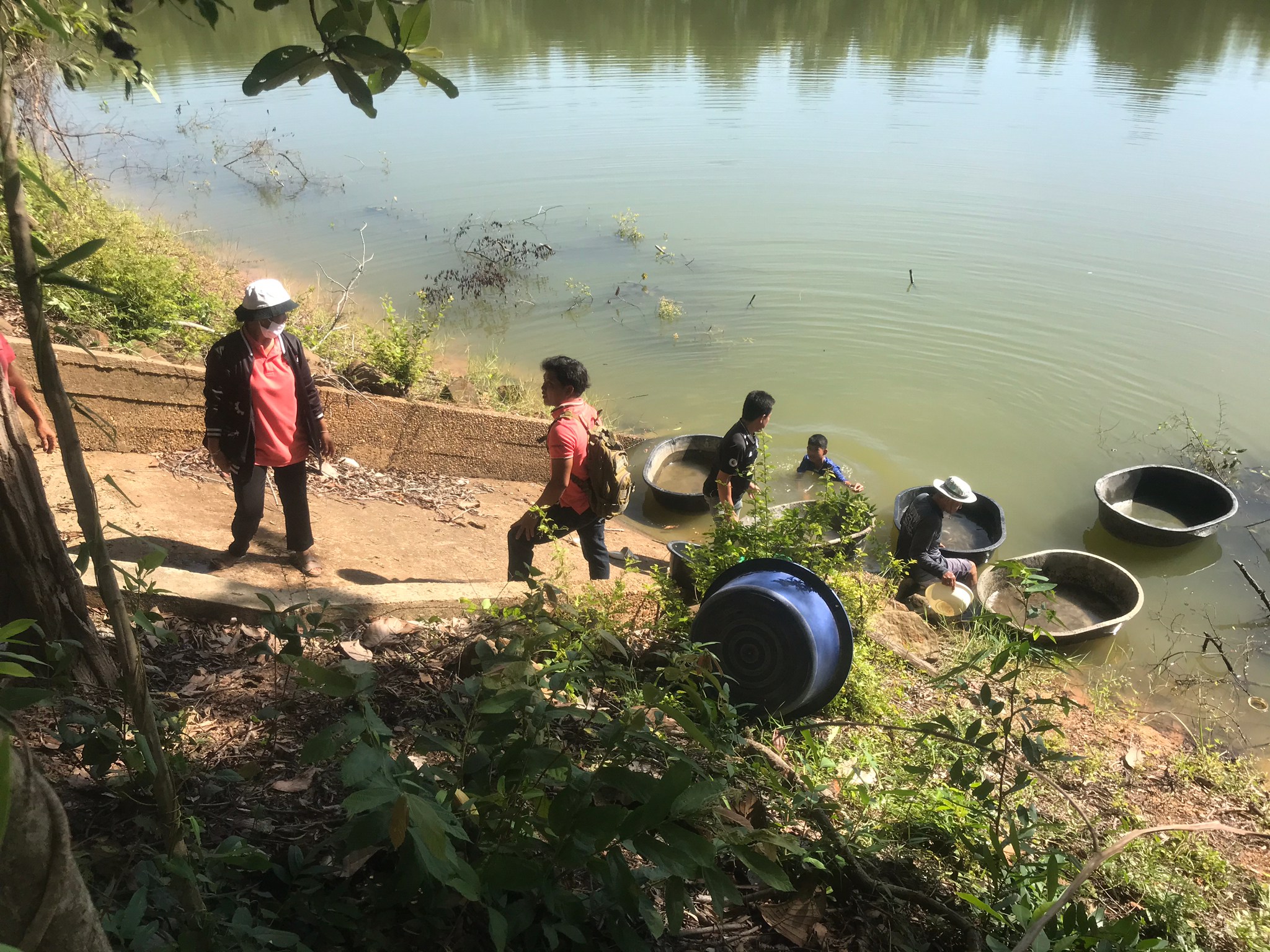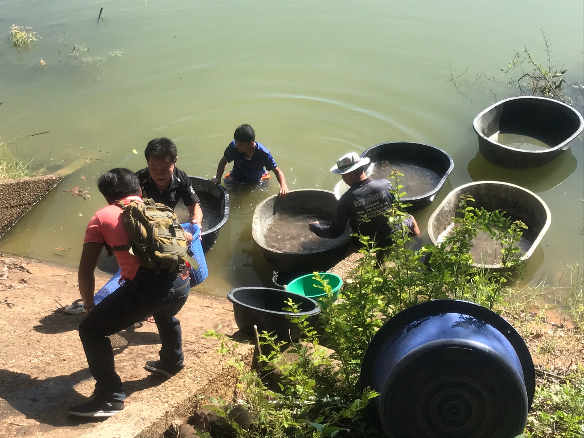 (8 มิถุนายน 2563) เวลา 08.30 น. นางสาวศิริรัตน์ อุทัยวัฒน์ เจ้าพนักงานประมงปฏิบัติงาน พร้อมด้วยนายสันติภาพ กวีกรณ์ นักวิชาการประมง และคณะกรรมการบริหารจัดการแหล่งน้ำชุมชน สระใหญ่ ตำบลโพธิ์ใหญ่ อำเภอวารินชำราบ   ร่วมกันปล่อยลูกกุ้งกราม ตามแผนปฏิบัติการฟื้นฟูเยียวยา เกษตรกรผู้ประสบภัยฝนทิ้งช่วง และอุทกภัยปี 2562 ในโครงการสร้างรายได้จากอาชีพประมงในแหล่งน้ำชุมชน ณ สระใหญ่ ตำบลโพธิ์ใหญ่ อำเภอวารินชำราบ  จังหวัดอุบลราชธานี