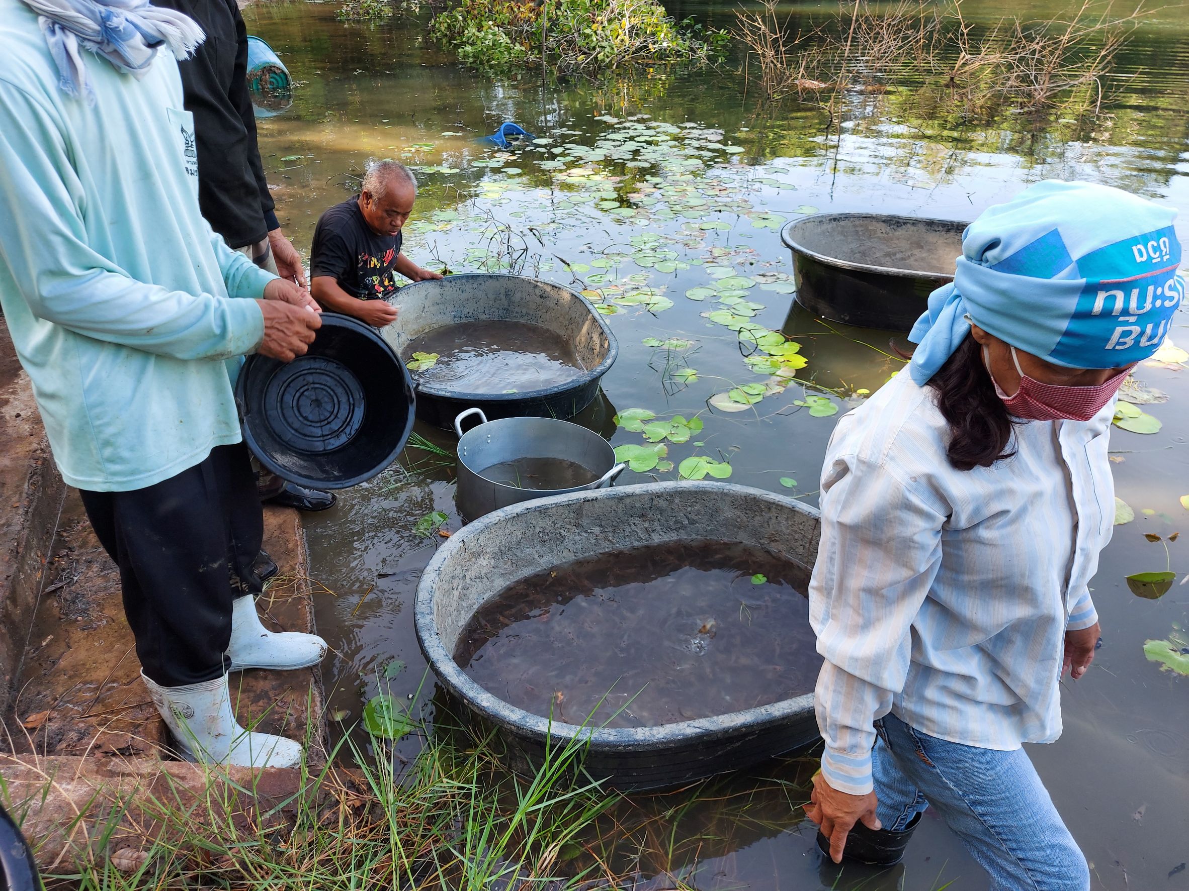ประมงอำเภอวารินชำราบ พร้อมผู้นำหมู่บ้าน สมาชิก อบต.ราษฎร  และคณะกรรมการบริหารจัดการแหล่งน้ำชุมชน ร่วมกันปล่อยกุ้งก้ามกราม จำนวน 200,000 ตัว ตามโครงการสร้างรายได้จากอาชีพประมงในแหล่งน้ำชุมชน