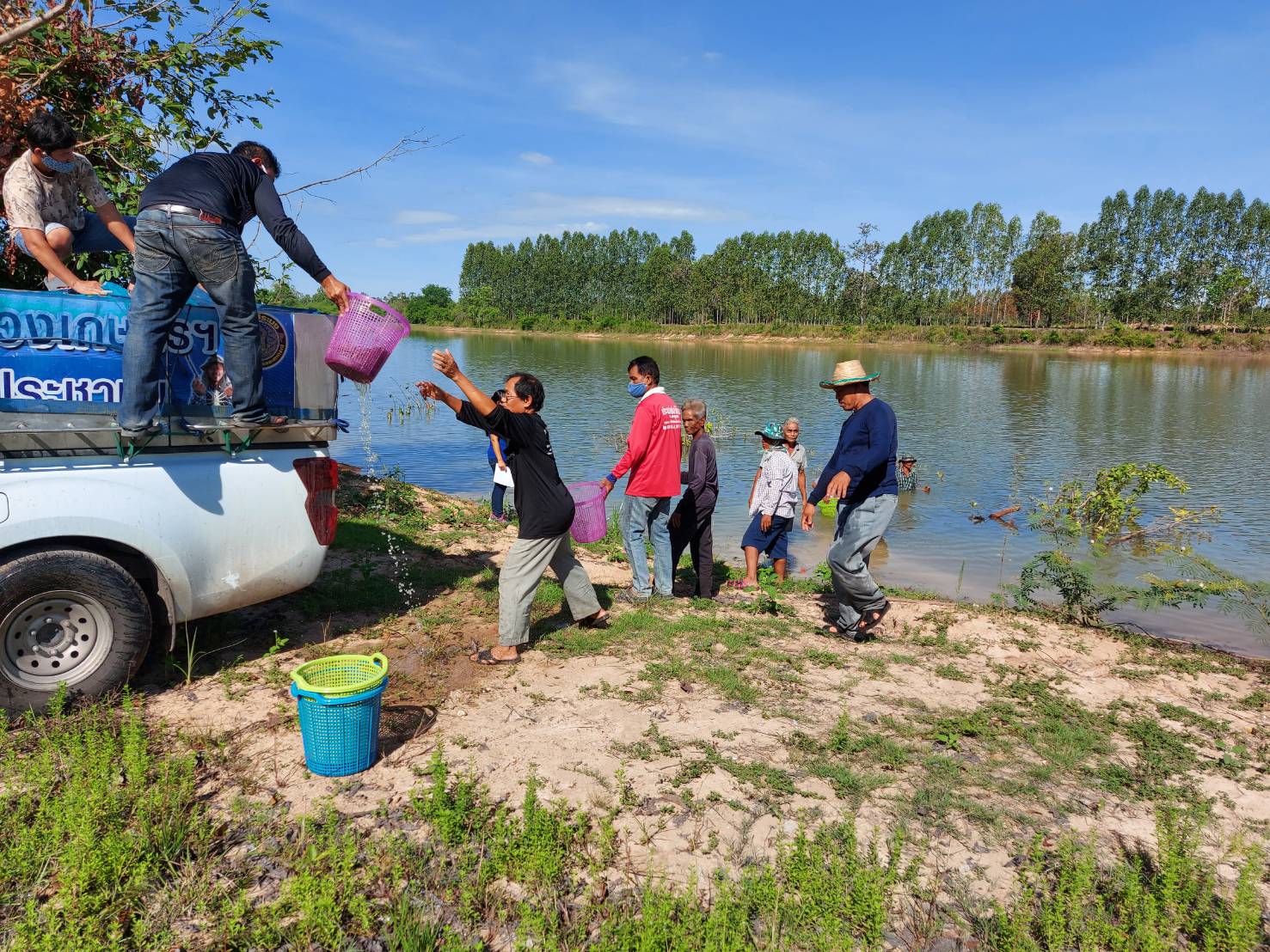 ประมงอำเภอเดชอุดม ร่วมกับคณะกรรมการตรวจรับกุ้งฯ ปล่อยลูกพันธุ์กุ้งก้ามกรามตามโครงการสร้างรายได้จากอาชีพประมงในแหล่งน้ำชุมชน