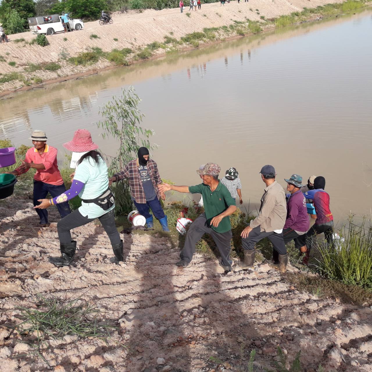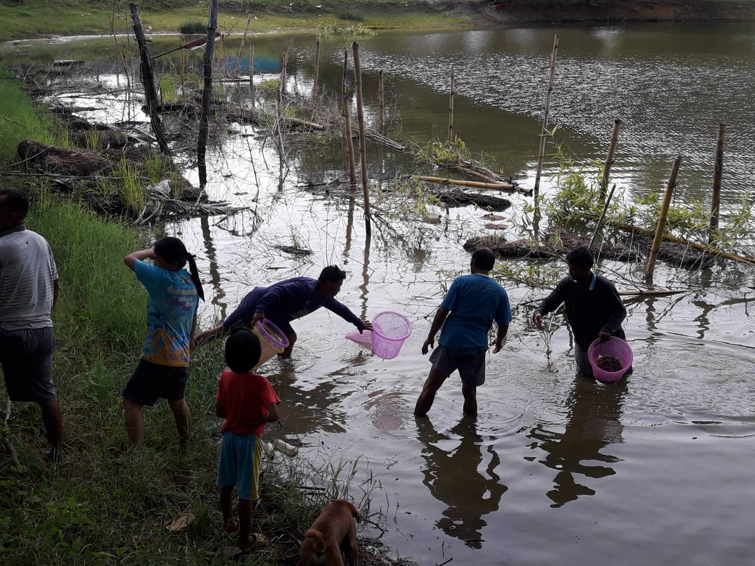 กิจกรรมร่วมกันปล่อยพันธุ์กุ้งก้ามกราม แห่งละ 200,000 ตัว ตามโครงการสร้างรายได้จากอาชีพประมงในแหล่งน้ำชุมชน อำเภอม่วงสามสิบ จังหวัดอุบลราชธานี