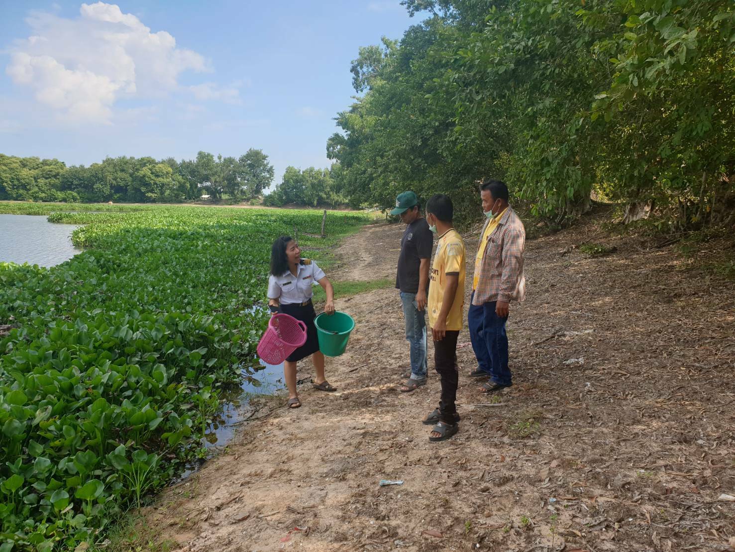 วันที่ 15-16 กรกฎาคม 2563 นางสาวบุญเลี้ยง ทองหุล ประมงอำเภอสว่างวีระวงศ์ ลงพื้นที่พบปะคณะกรรมการแหล่งน้ำประจำชุมชน   เพื่อแจ้งกำหนดการ นัดหมาย อธิบายขั้นตอนวิธีการปล่อยพันธุ์กุ้งก้ามกรามในวันที่ 20 กรกฎาคม 2563 ตามโครงการสร้างรายได้จากอาชีพประมงในแหล่งน้ำชุมชน ประกอบด้วย