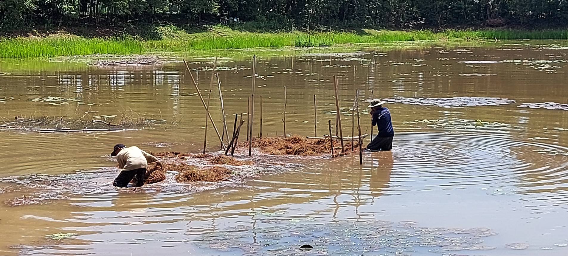 ประมงอำเภอน้ำยืน ร่วมกับคณะกรรมการฯแหล่งน้ำ  เตรียมความพร้อมและจัดทำกร่ำสร้างที่หลบภัย เพิ่มเติม ณ หนองผือ (บ้านคำระหงษ์) ม.16 ต.โดมประดิษฐ์ อ.น้ำยืน จ.อุบลราชธานี