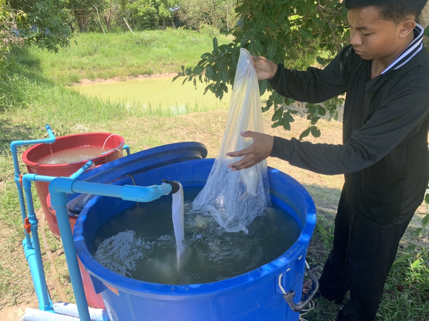 ประมงอำเภอเขื่องใน ร่วมกับฟาร์มตัวอย่างบ้านยางน้อย ติดตั้งชุดเพาะพันธุ์ปลา เพาะพันธุ์ปลาตะเพียนขาว ณ ฟาร์มตัวอย่างบ้านยางน้อย ต.ก่อเอ้ อ.เขื่องใน จ.อุบลราชธานี