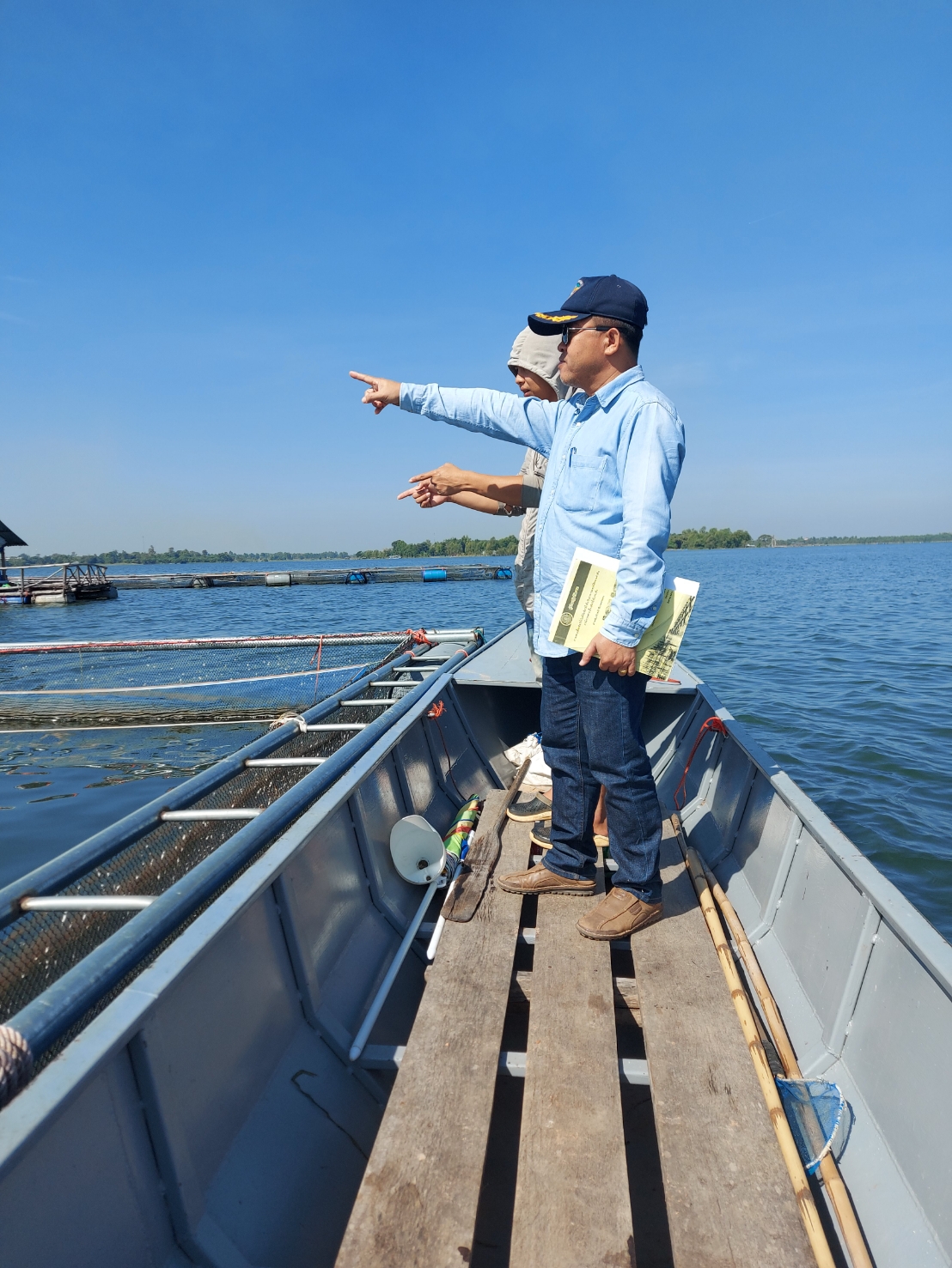 ประมงอำเภอพิบูลมังสาหาร สำรวจจำนวนผู้เลี้ยงปลากระชังในเขื่อนสิรินธร จังหวัดอุบลราชธานี