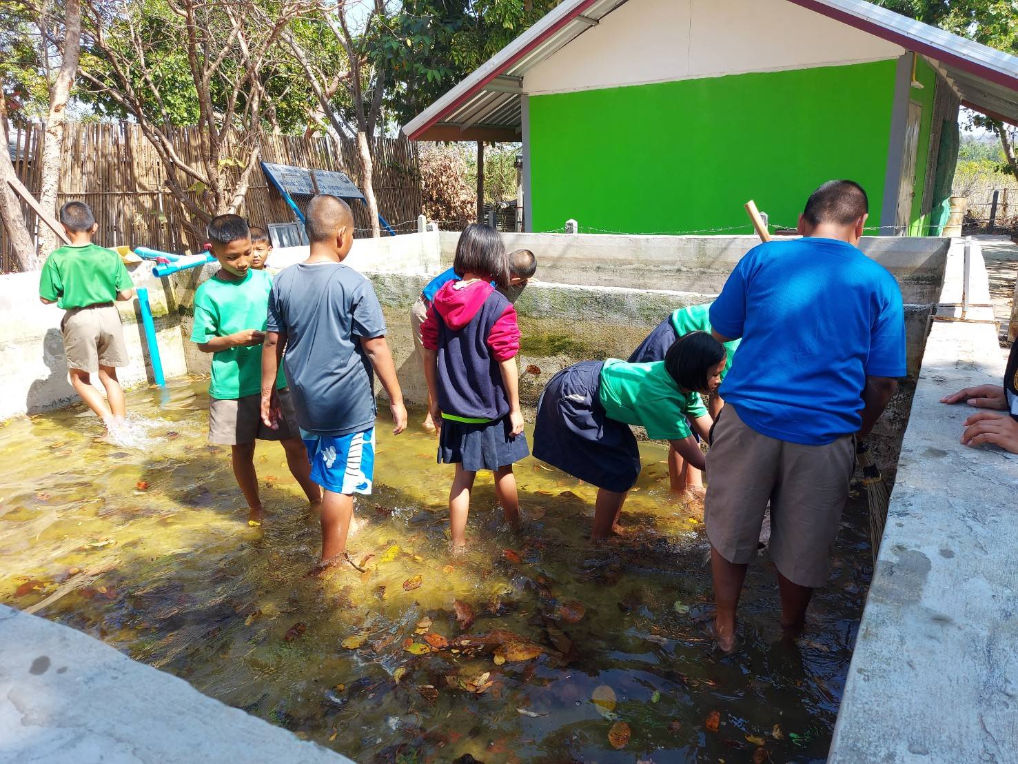 ในบ่อซีเมนต์  ณ ศูนย์การเรียนโรงเรียนตำรวจตระเวนชายแดนพิทักษ์ปัญญา