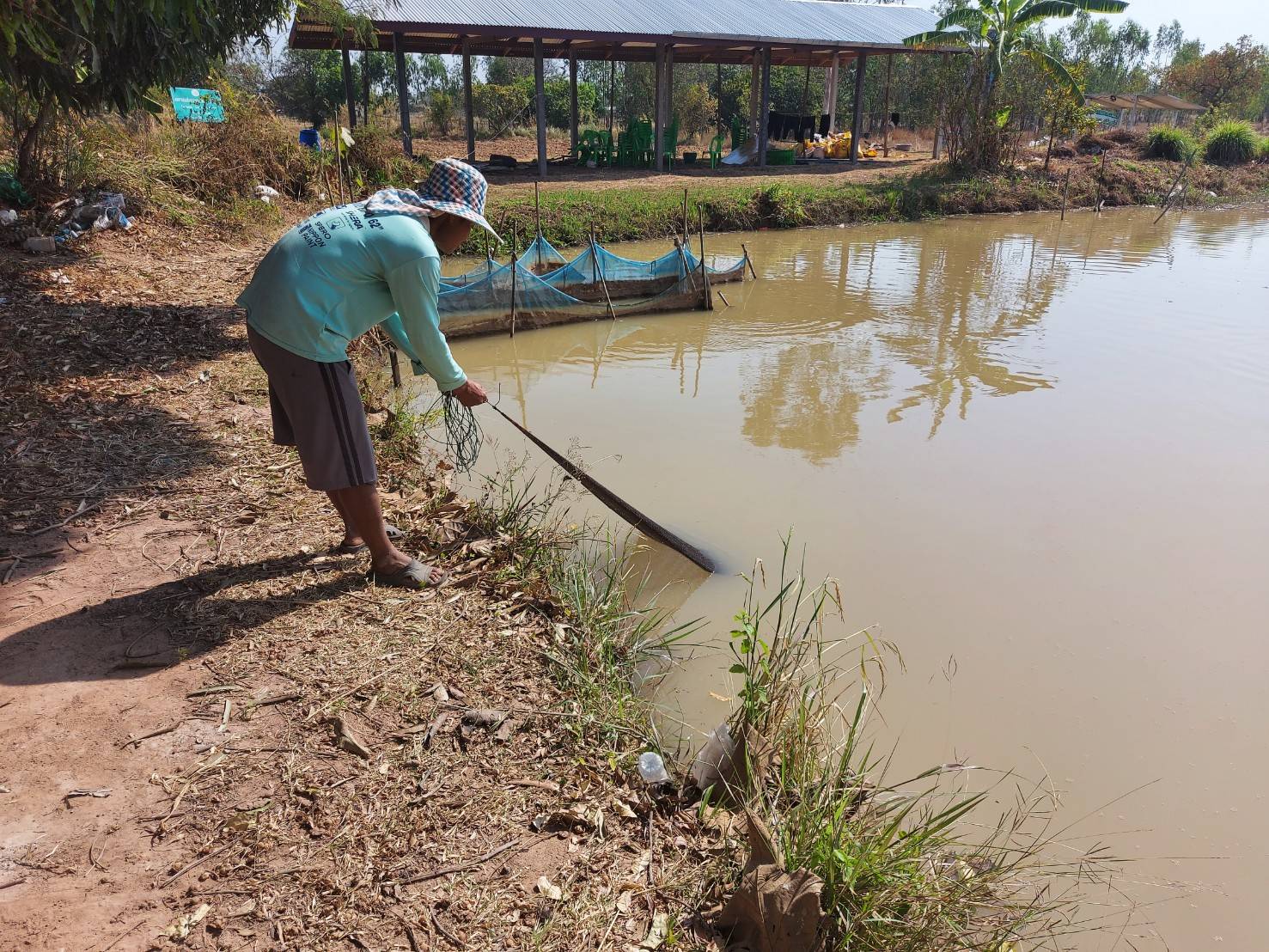 การติดตามงานโครงการพัฒนาเสริมทางเลือกอาชีพด้านการประมง การเลี้ยงปลานิลแปลงเพศในบ่อดิน ม.8 ต.โพธิ์ไทร  อ.โพธิไทร จ.อุบลราชธานี